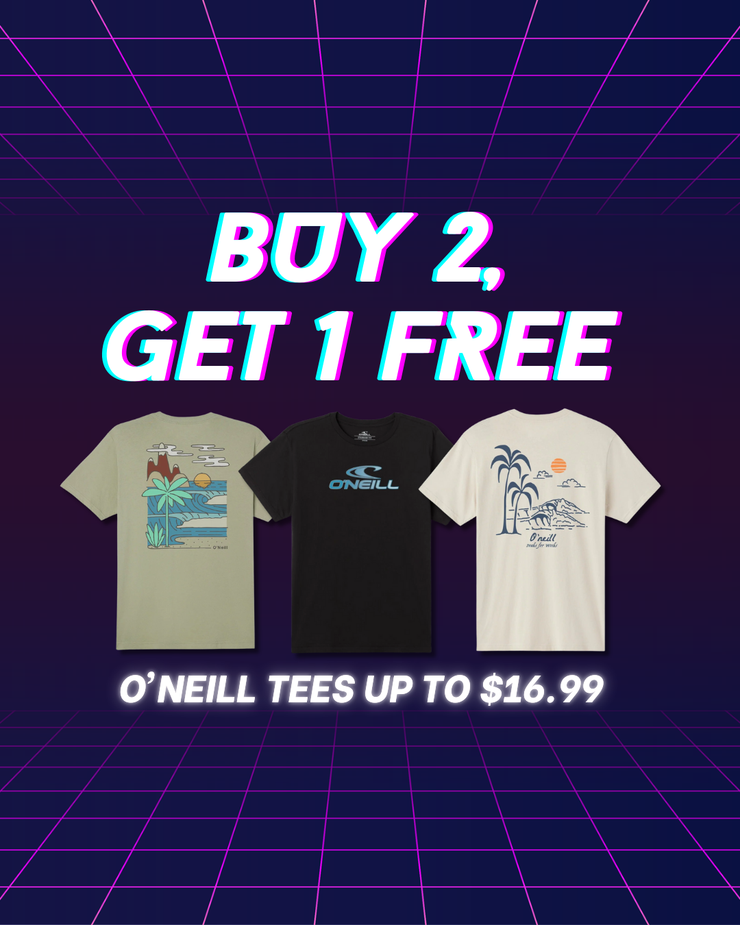 Buy 2, Get 1 FREE on our Branded Volley Shorts, and O'Neill Men's T-Shirts with a price up to $16.99