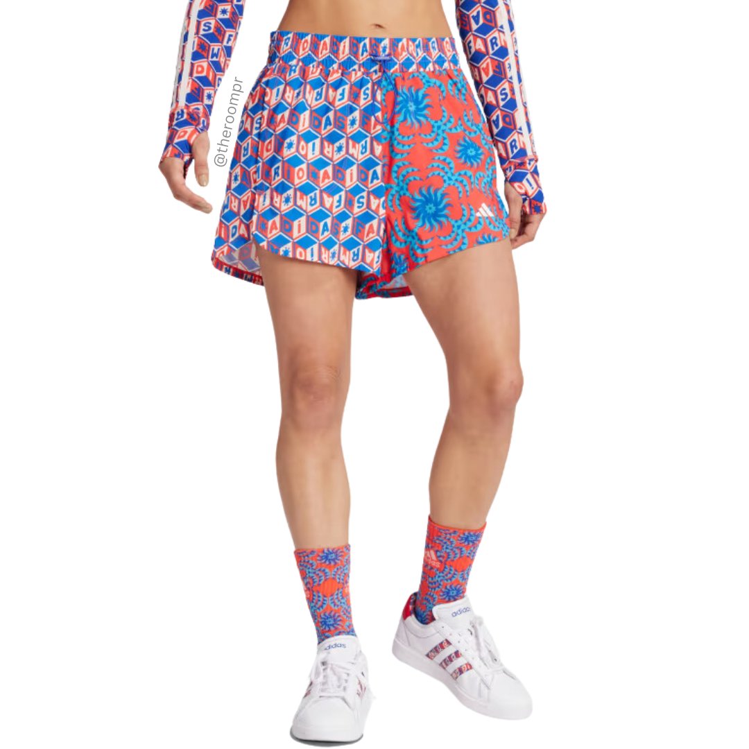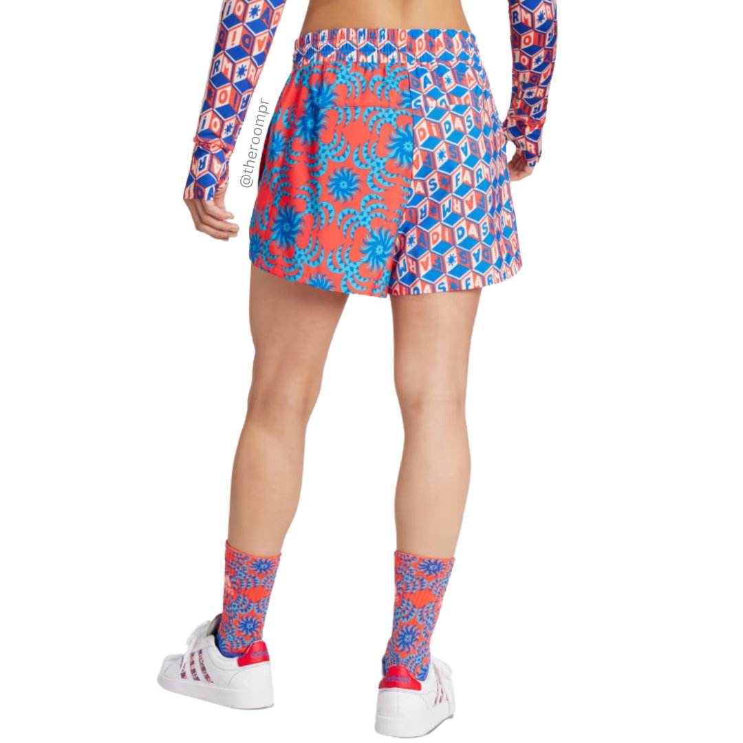 Sumérgete en el vibrante estilo retro con estos coloridos shorts Adidas x FARM Pacer para mujer. Diseñados por la marca brasileña FARM Rio, incorporan la tecnología AEROREADY que absorbe la humedad para un entrenamiento cómodo. Además, están confeccionados con al menos un 70 % de materiales reciclados, lo que reduce los residuos y nuestro impacto ambiental.