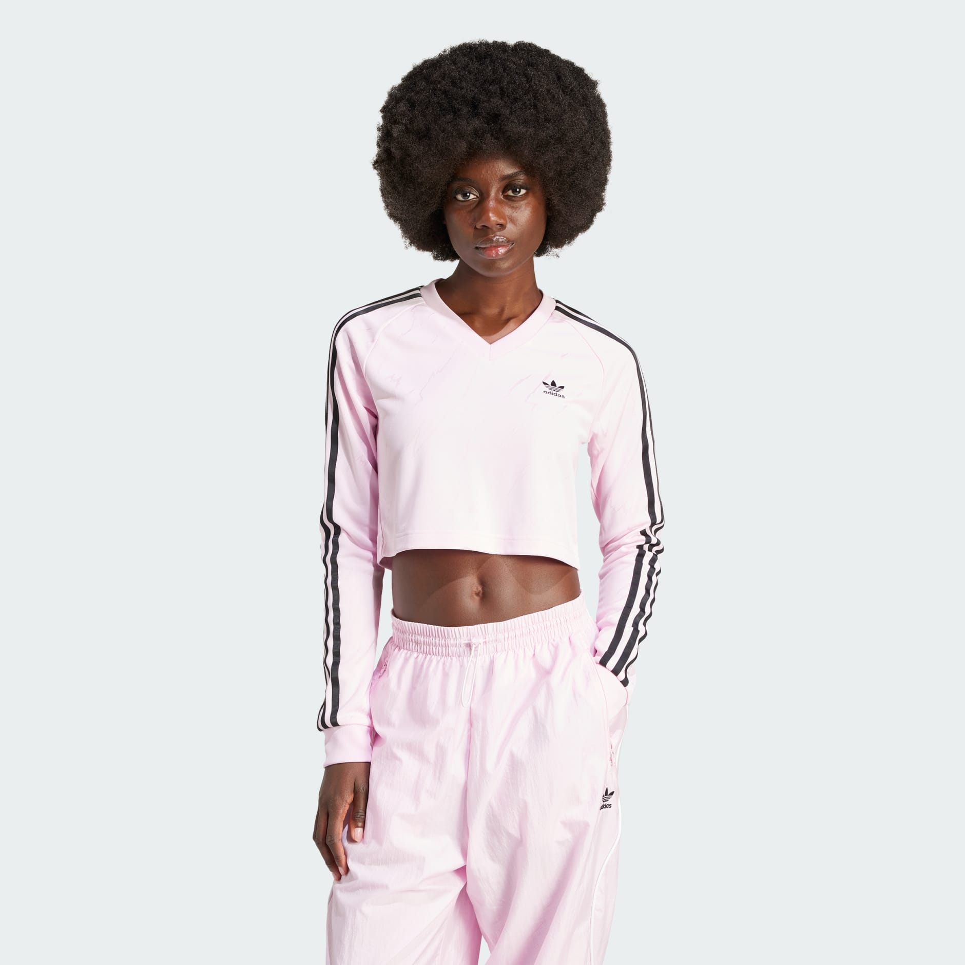 Dale un toque deportivo y elegante a tu armario con la camiseta corta de manga larga Adidas para mujer. Fabricada con materiales reciclados, esta camiseta presenta un sutil estampado de rayos en jacquard y un corte ajustado y corto para un look vanguardista. Perfecta para combinar con todo, desde joggers hasta vaqueros, a la vez que ayuda a reducir los residuos y nuestro impacto ambiental.
