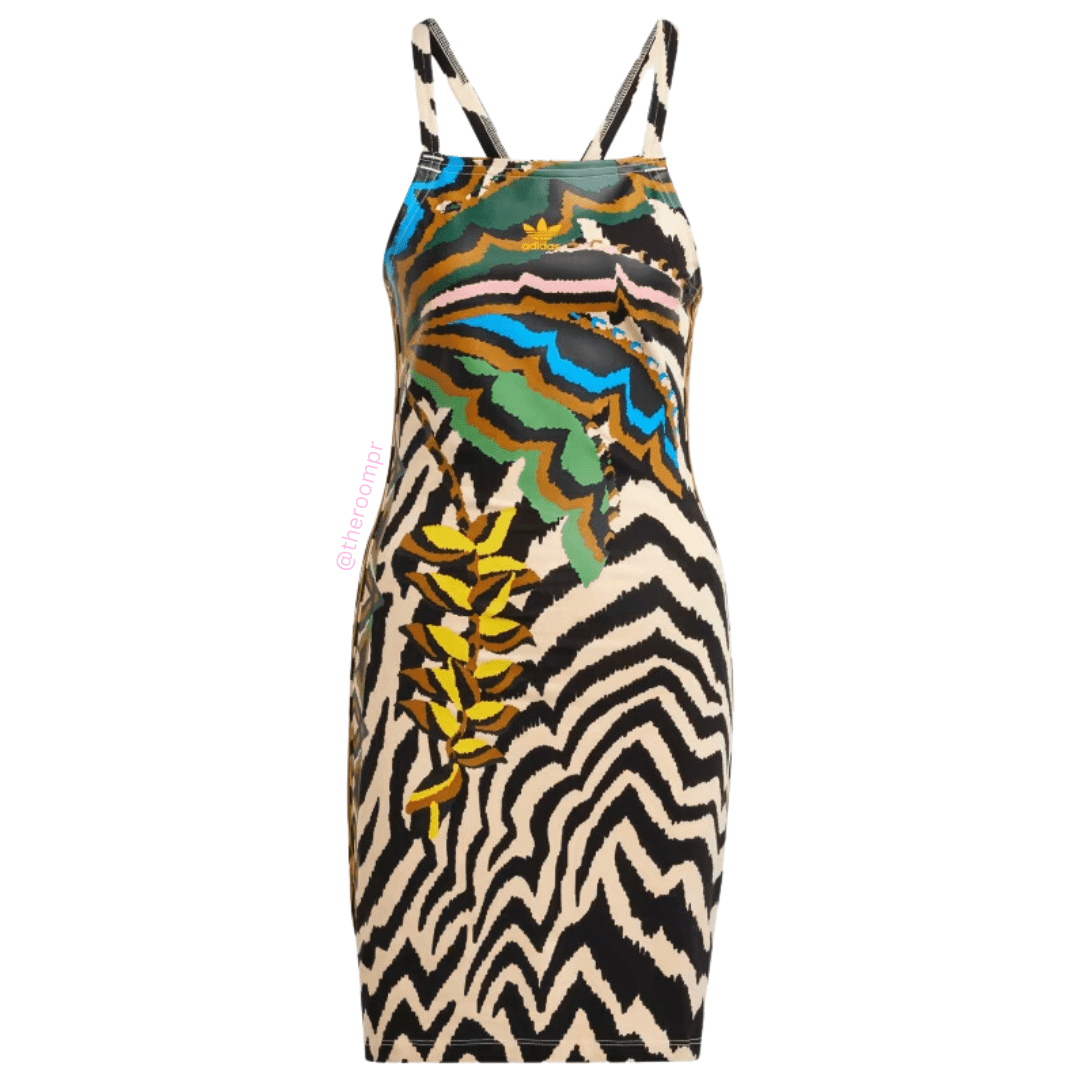 Prepárate para destacar con este minivestido adidas x FARM Rio, con un vibrante diseño inspirado en la naturaleza, procedente de Brasil. Confeccionado en satén y con un estampado de cebra que se funde con plantas tropicales, este vestido le da un toque único a una silueta clásica. Además, gracias a la tecnología Better Cotton, te sentirás segura de tu estilo sostenible.