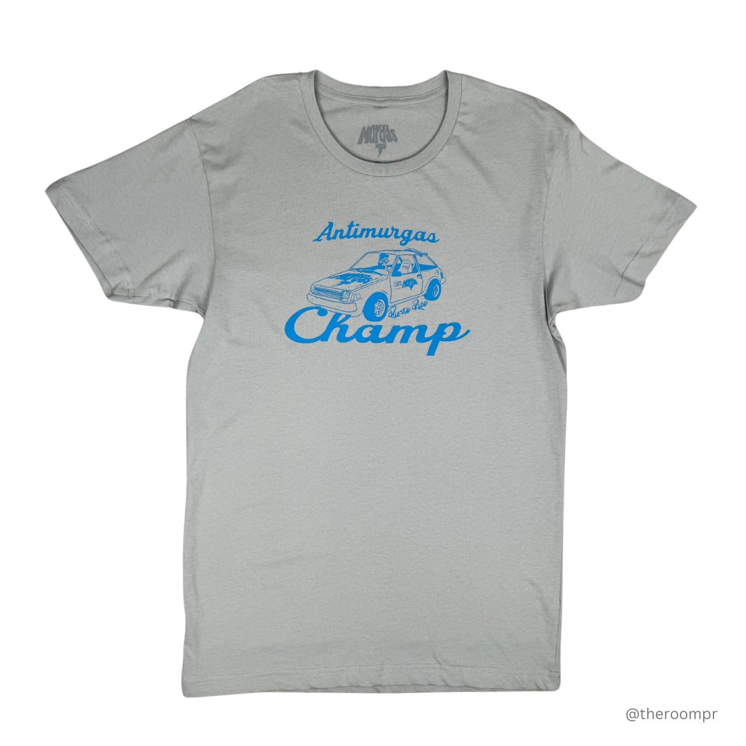 Súbete a las olas con estilo con la camiseta "Campeón" de Anti Murgas. Diseñada con nostalgia boricua.