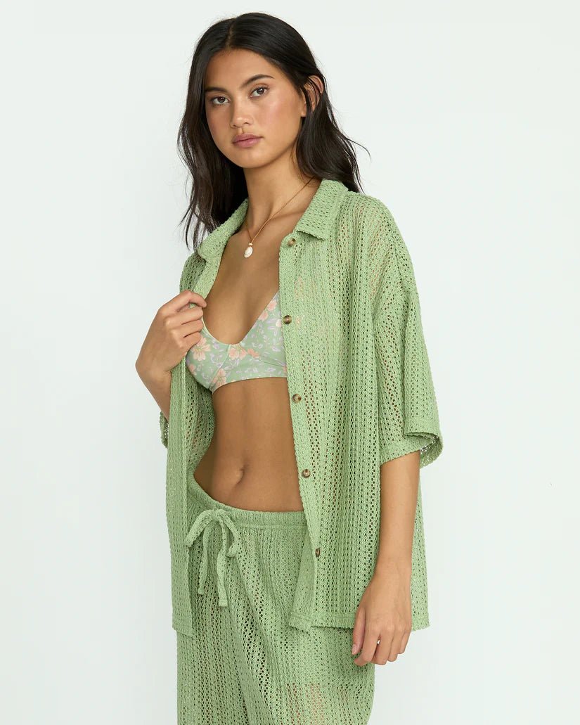 La camiseta corta Billabong "Wild Waves" celebra el patio de recreo de la naturaleza con un gran gráfico impreso en el pecho. Confeccionado en tejido de punto de algodón con mini volantes en el dobladillo, es perfecto para un ambiente tropical.