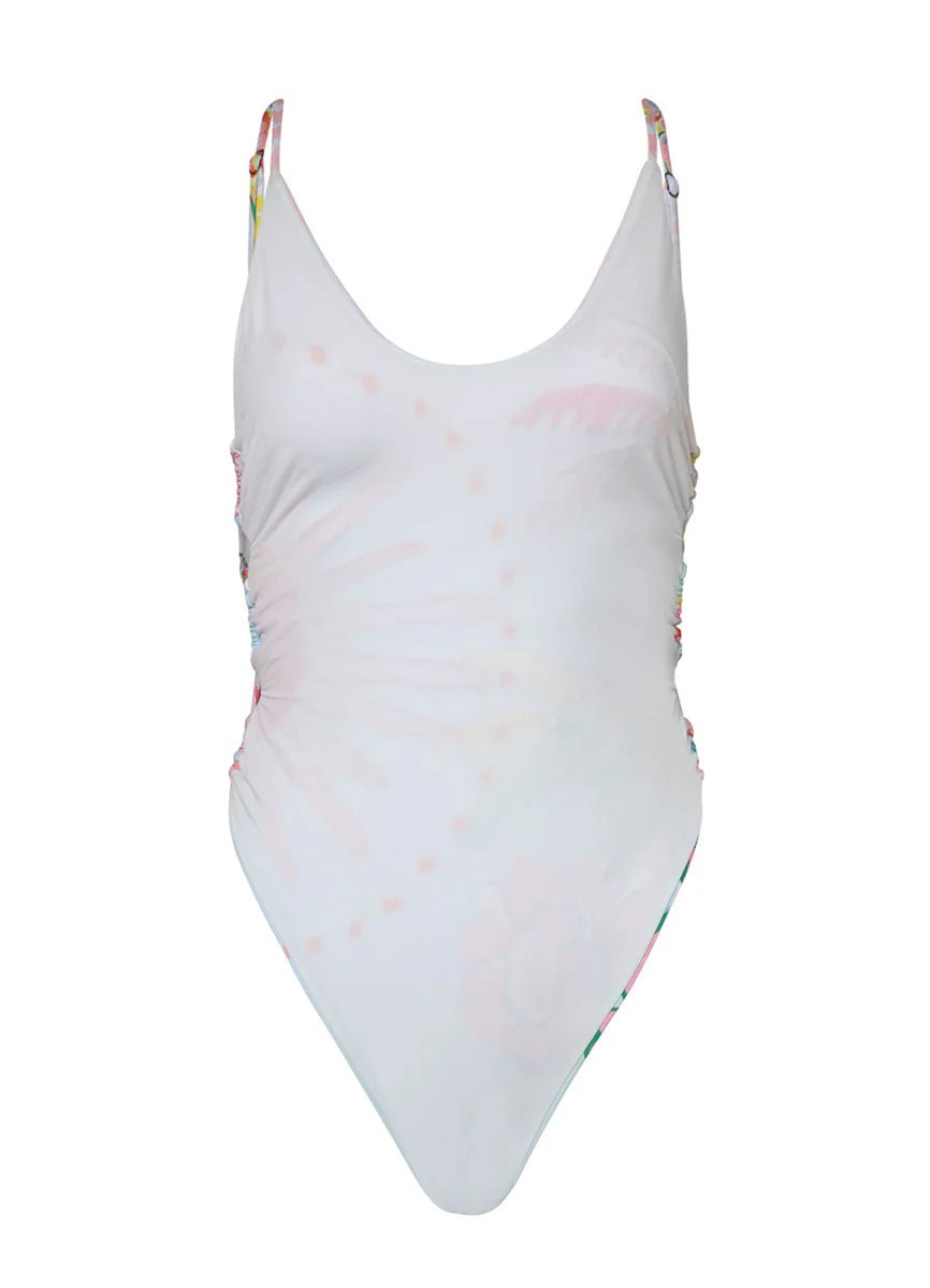 El top de bikini Zen tiene una moderna copa triangular deslizante, tirantes ajustables, cobertura baja y estampado reversible.