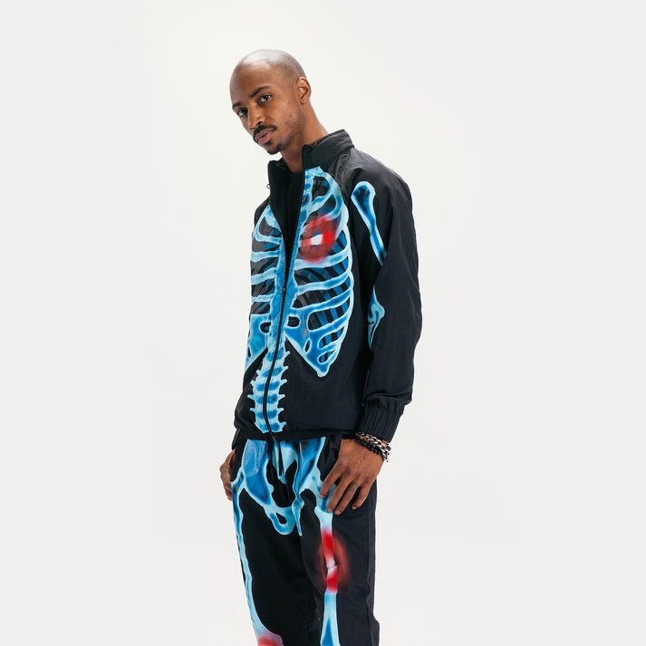 Disfruta de la moda urbana de lujo con nuestra chaqueta deportiva "Injuries". Fabricada con nailon ligero y capucha oculta, esta chaqueta es perfecta para el día a día. Completa tu look con los pantalones deportivos a juego, disponibles por separado.