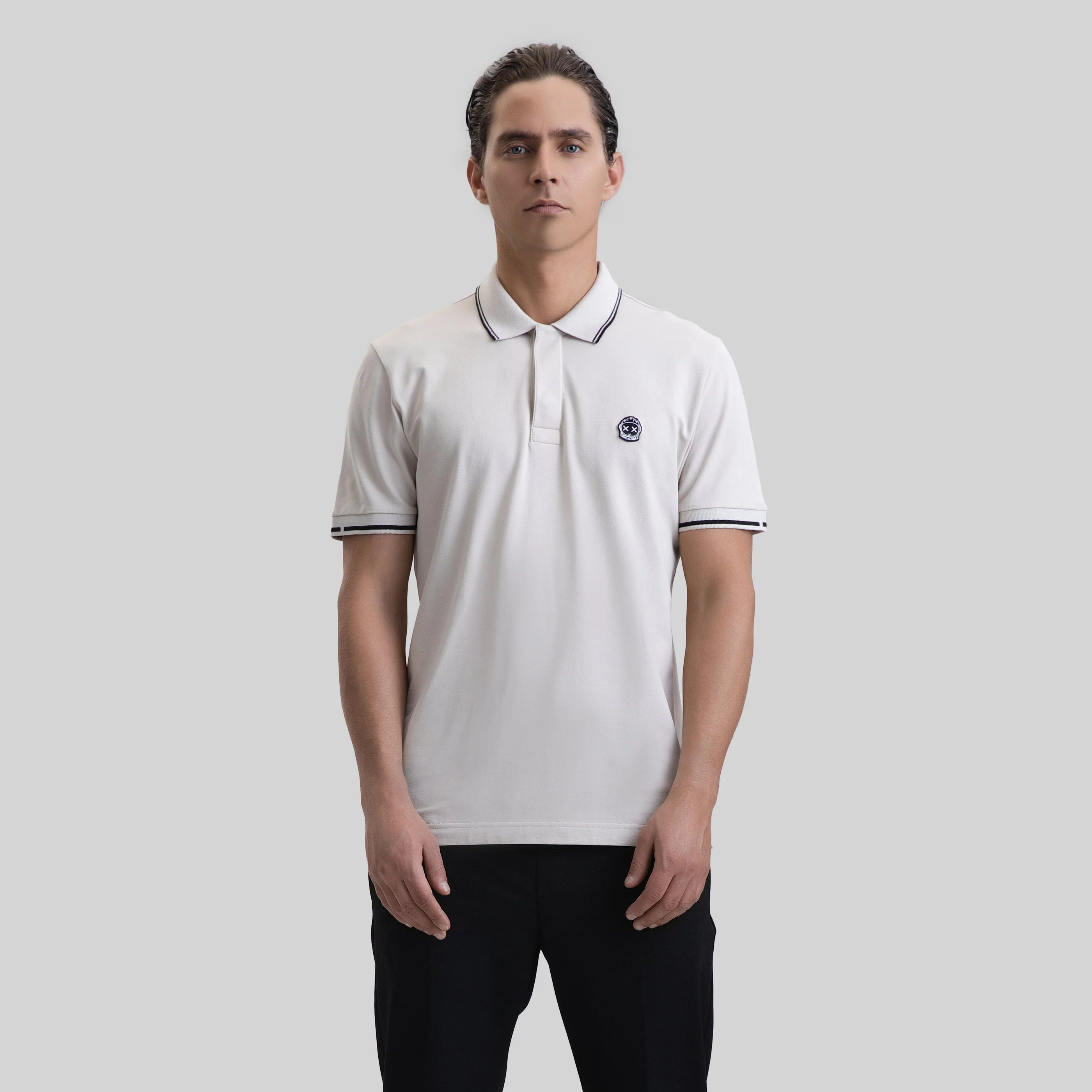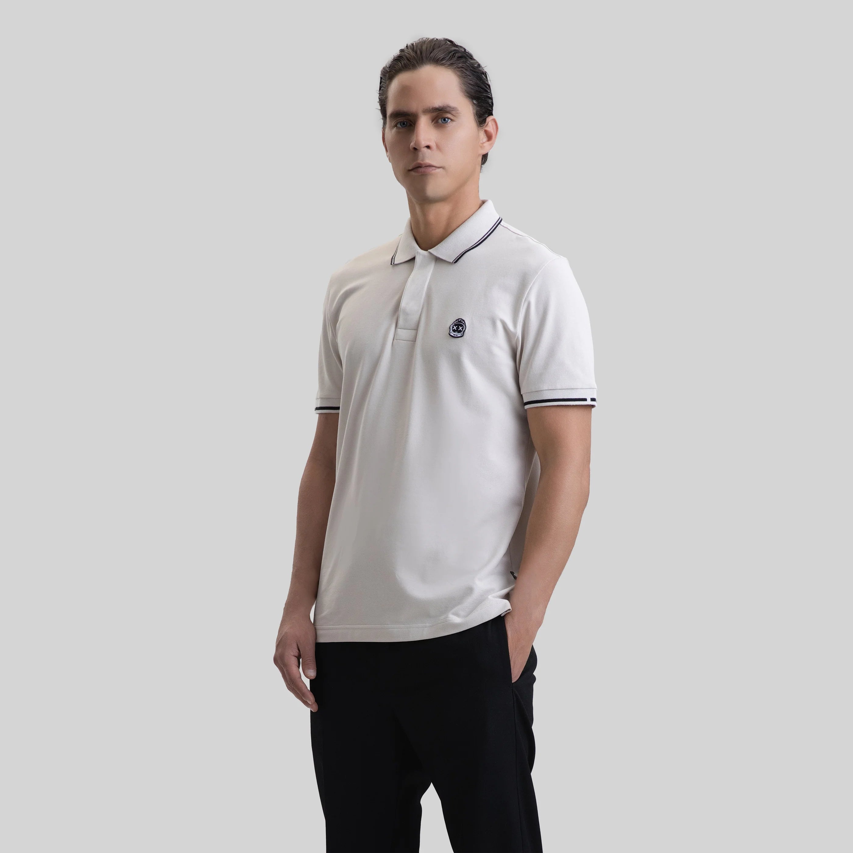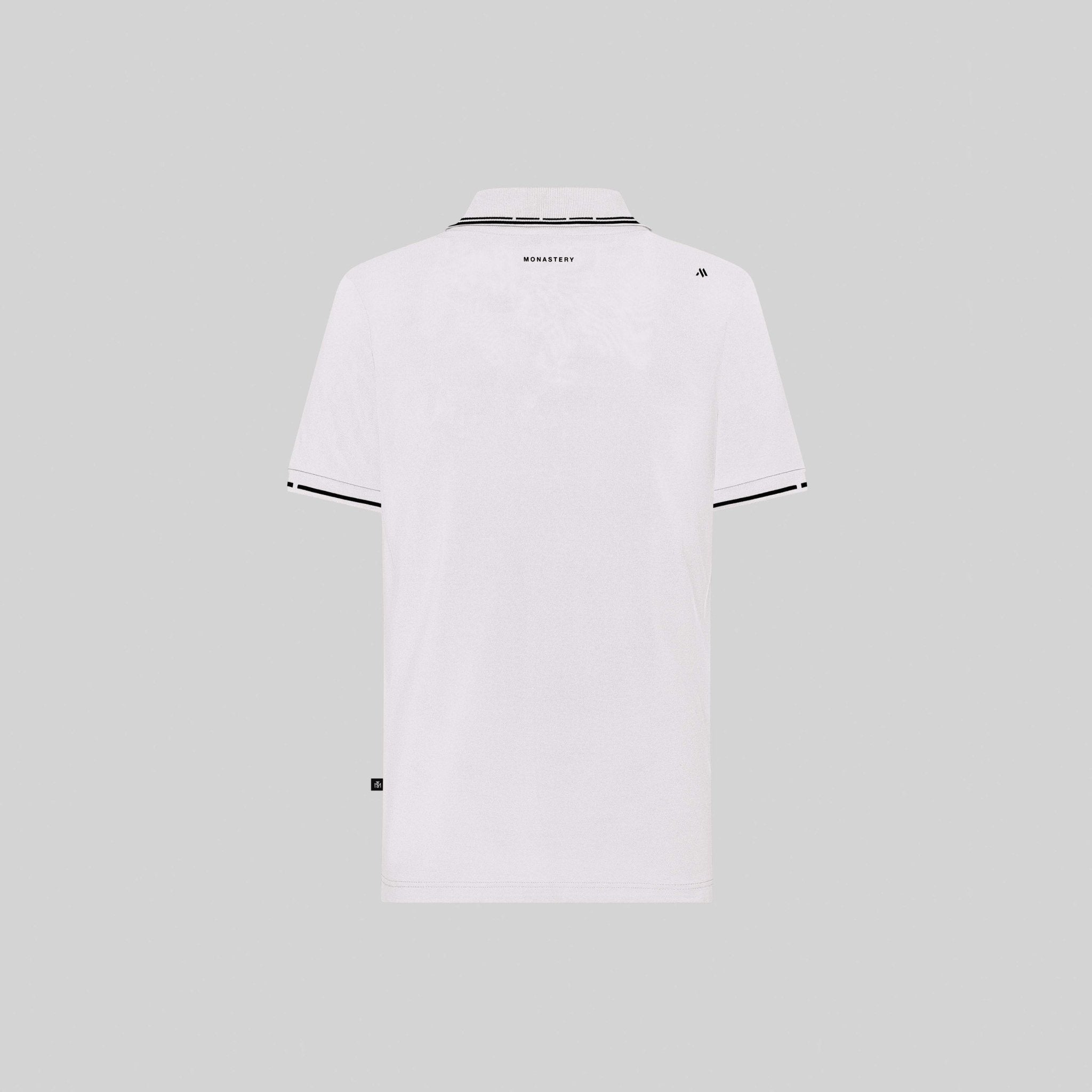 Presentamos el Polo "Veyrona" de Monastery - Rayo de Luna. Confeccionado con 100 % algodón Pima peruano, este lujoso polo para hombre presenta una silueta recta, cuello y puños de punto con rayas en contraste y una tapeta de botones oculta. Con el logo de Monastery estampado y el icónico aplique del astronauta Phillip, es la combinación perfecta de elegancia y dinamismo para cualquier ocasión.