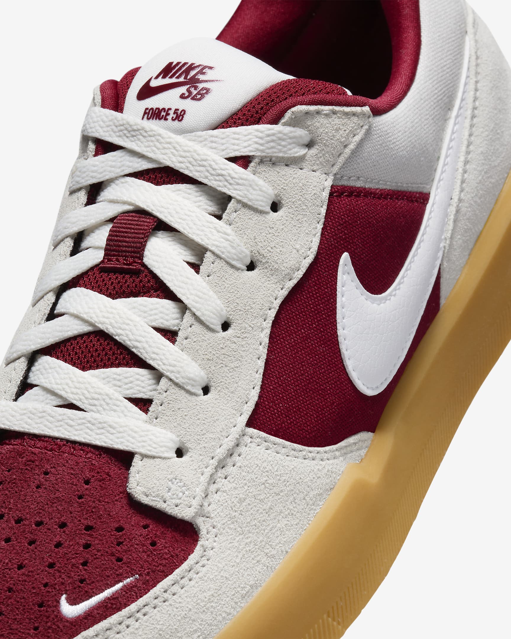 Sal a la calle con estilo con los zapatos de skate Nike SB Force 58. Estos zapatos duraderos con suela de copa ofrecen la flexibilidad de los zapatos vulcanizados y cuentan con una mezcla de lona y gamuza con perforaciones en la puntera para una apariencia tradicional inspirada en el baloncesto. Prepárate para triturar con la última innovación de Nike.