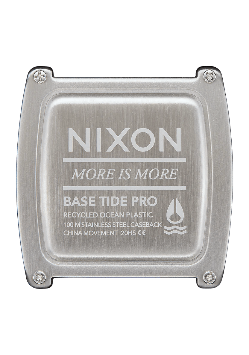 Asegúrate de que las olas que cojas sean más limpias con el nuevo y mejorado Base Tide Pro. Ahora fabricado con plásticos oceánicos reciclados #tide, cada reloj mantiene la basura alejada del agua y te mantiene al día con información preprogramada sobre mareas de 550 playas de todo el mundo. Es resistente al agua hasta los pulsadores, y la correa de silicona ventilada se mantiene en su lugar gracias a nuestros dobles Locking Loopers™.