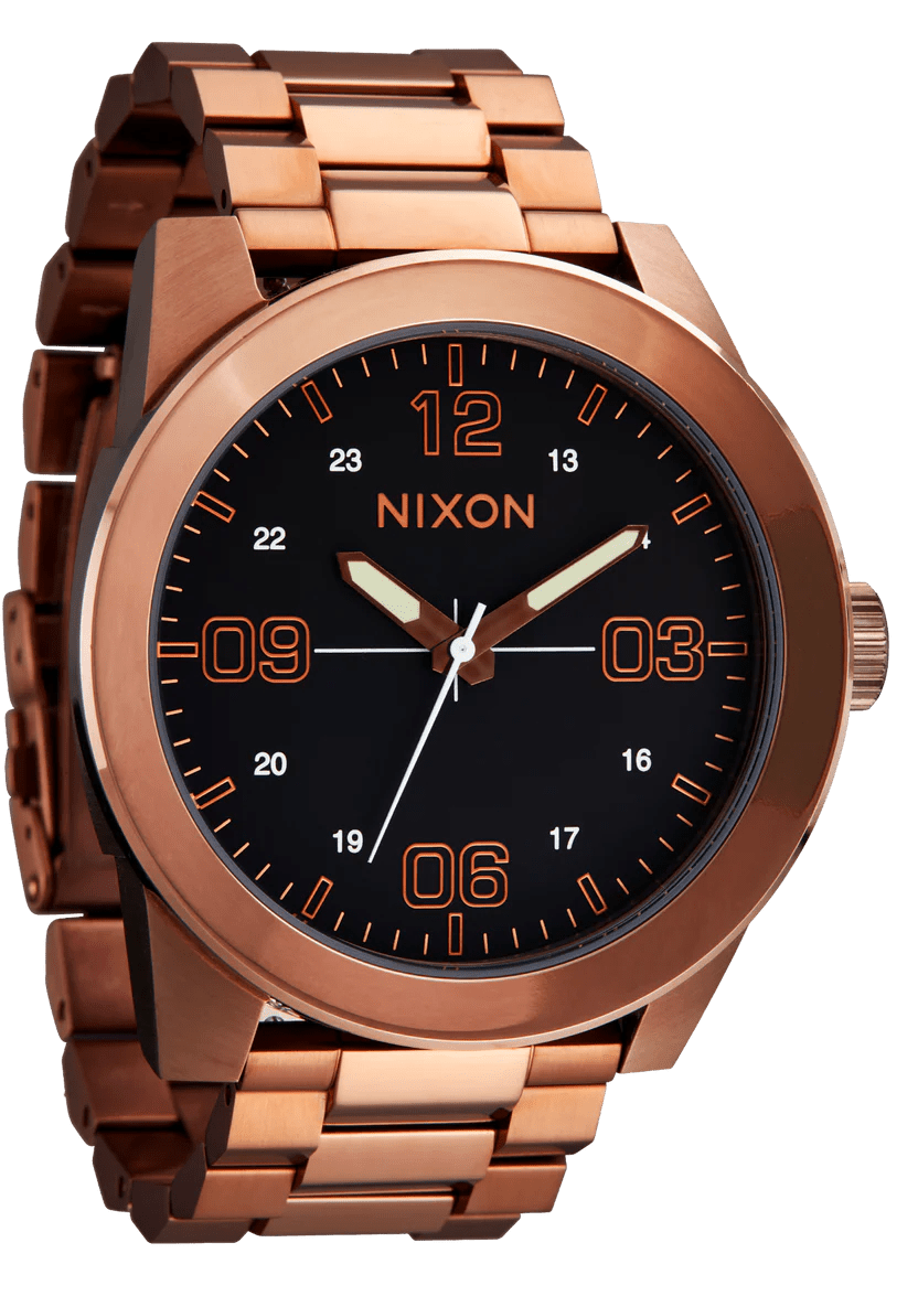 El reloj Nixon Corporal SS es una audaz declaración de fuerza y ​​resistencia. Su cristal empotrado protege la esfera de arañazos, mientras que el bisel de gran tamaño le aporta una gran durabilidad. Los eslabones facetados imitan una cordillera, creando una silueta imponente que destaca. Creado para resistir y diseñado para impresionar, este reloj te equipa para afrontar cualquier desafío con confianza y estilo audaz.