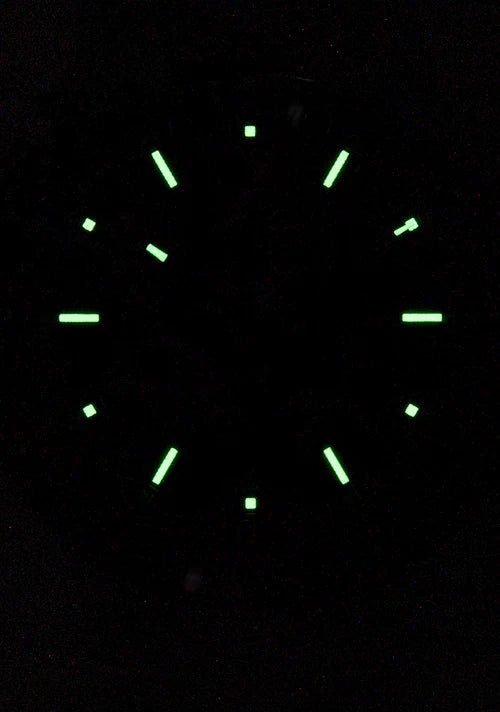 Equipado con una caja y bisel de acero inoxidable sólido, cristal mineral endurecido y clasificación de resistencia al agua de 100 metros / 10 ATM.