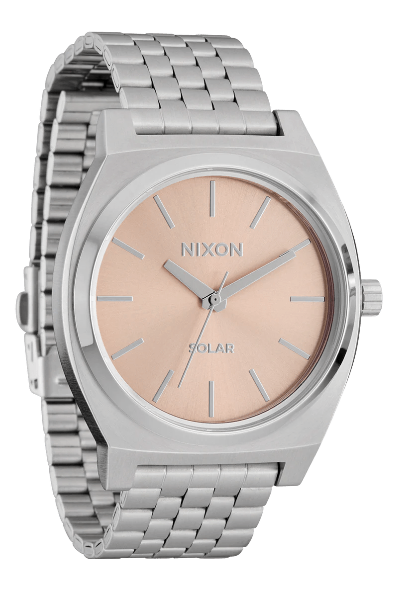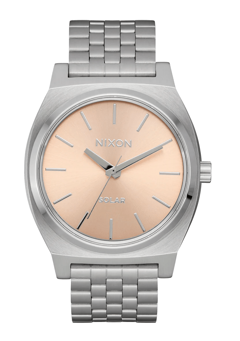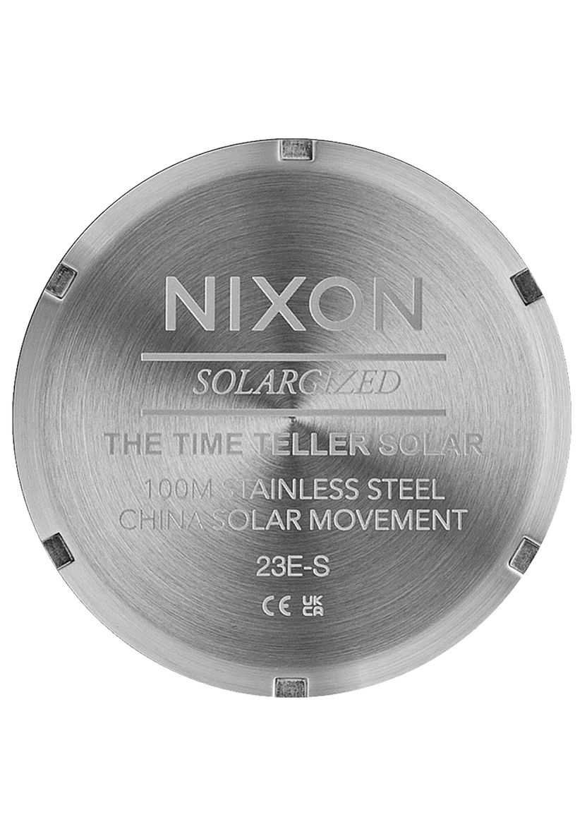 Un verdadero ícono de Nixon acaba de ser sobrealimentado. Presentamos el nuevo Time Teller Solar. Construido con la sencilla sofisticación que conoces y amas, el Time Teller Solar cuenta con una caja más grande de 40 mm, un nuevo brazalete de 5 eslabones de liberación rápida con cierre desplegable que se puede ajustar sin herramienta y una clasificación de impermeabilidad de 100 m/10 ATM. Este reloj está listo para hacerte lucir y sentirte bien dondequiera que vayas.