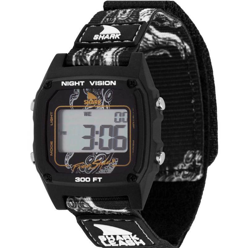 El reloj Freestyle Shark Classic Leash "Octopus Black" combina un estilo retro con una funcionalidad digital fiable. Su correa de velcro, inspirada en las correas originales de las tablas de surf de los años 80, ofrece un ajuste seguro y cómodo para un uso activo. Equipado con funciones esenciales como hora, fecha, cronómetro, temporizador de cuenta regresiva, alarma y retroiluminación con visión nocturna, está diseñado para adaptarse a tu ajetreado estilo de vida. Resistente al agua hasta 100 metros y con garantía limitada de por vida, este reloj garantiza durabilidad y tranquilidad para tus aventuras diarias.