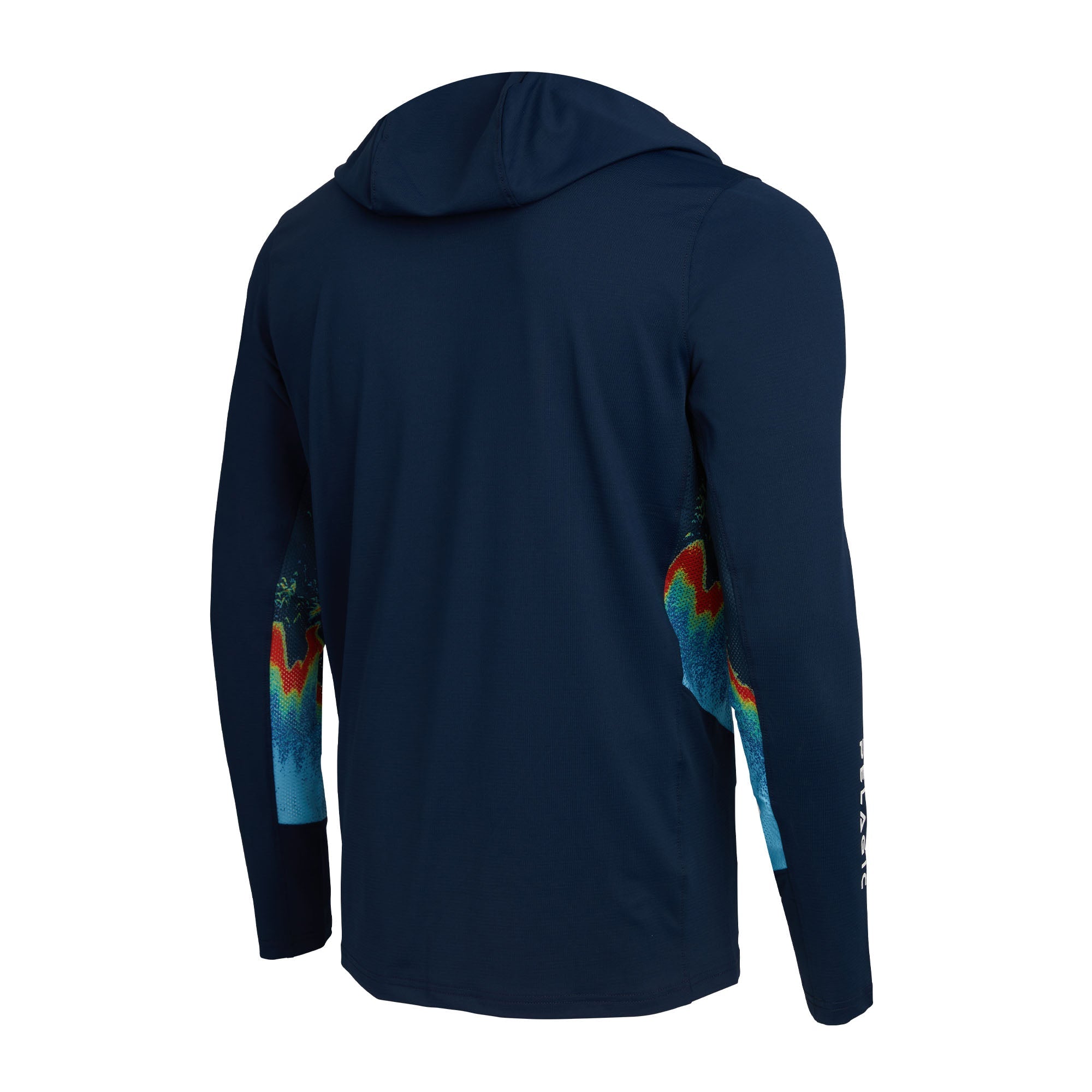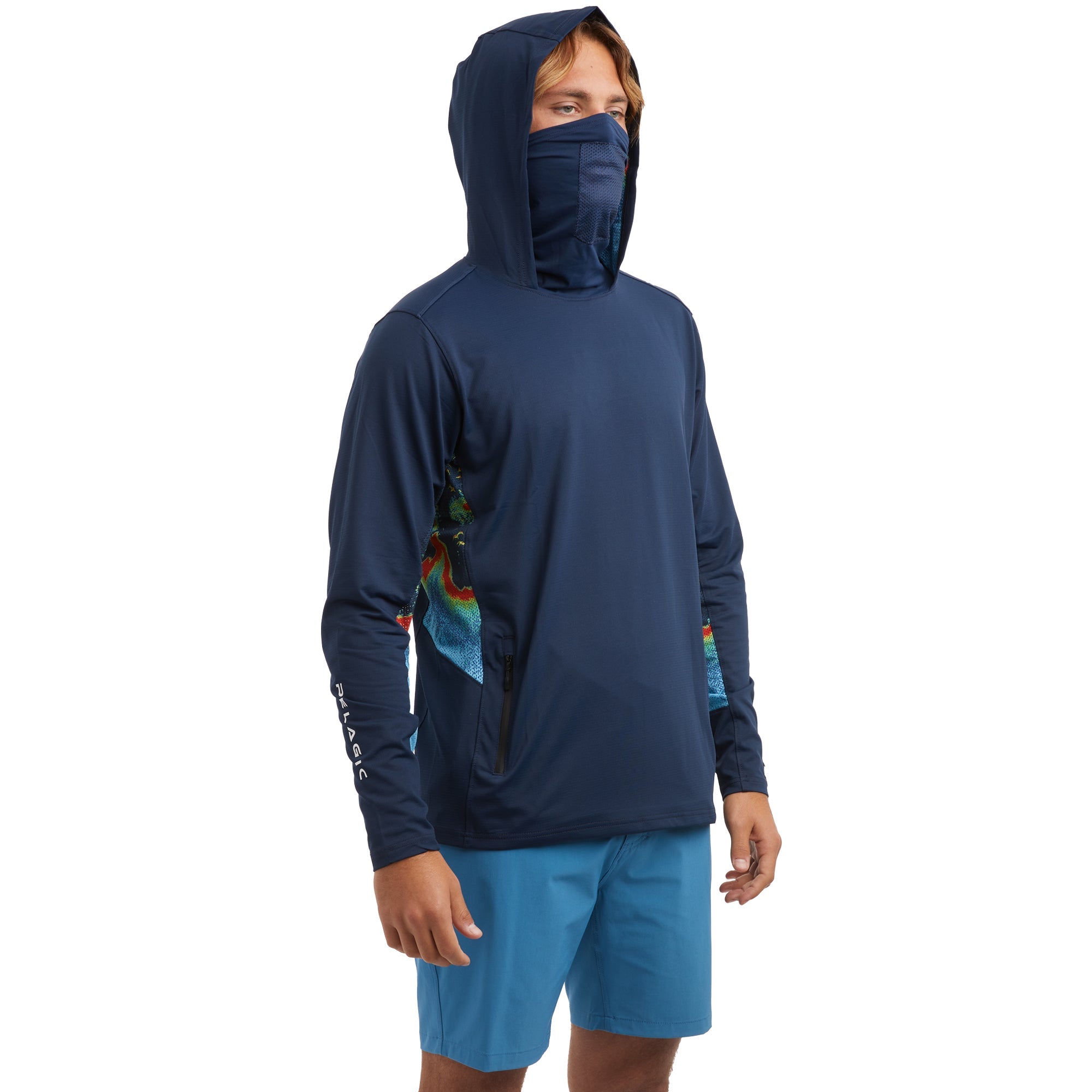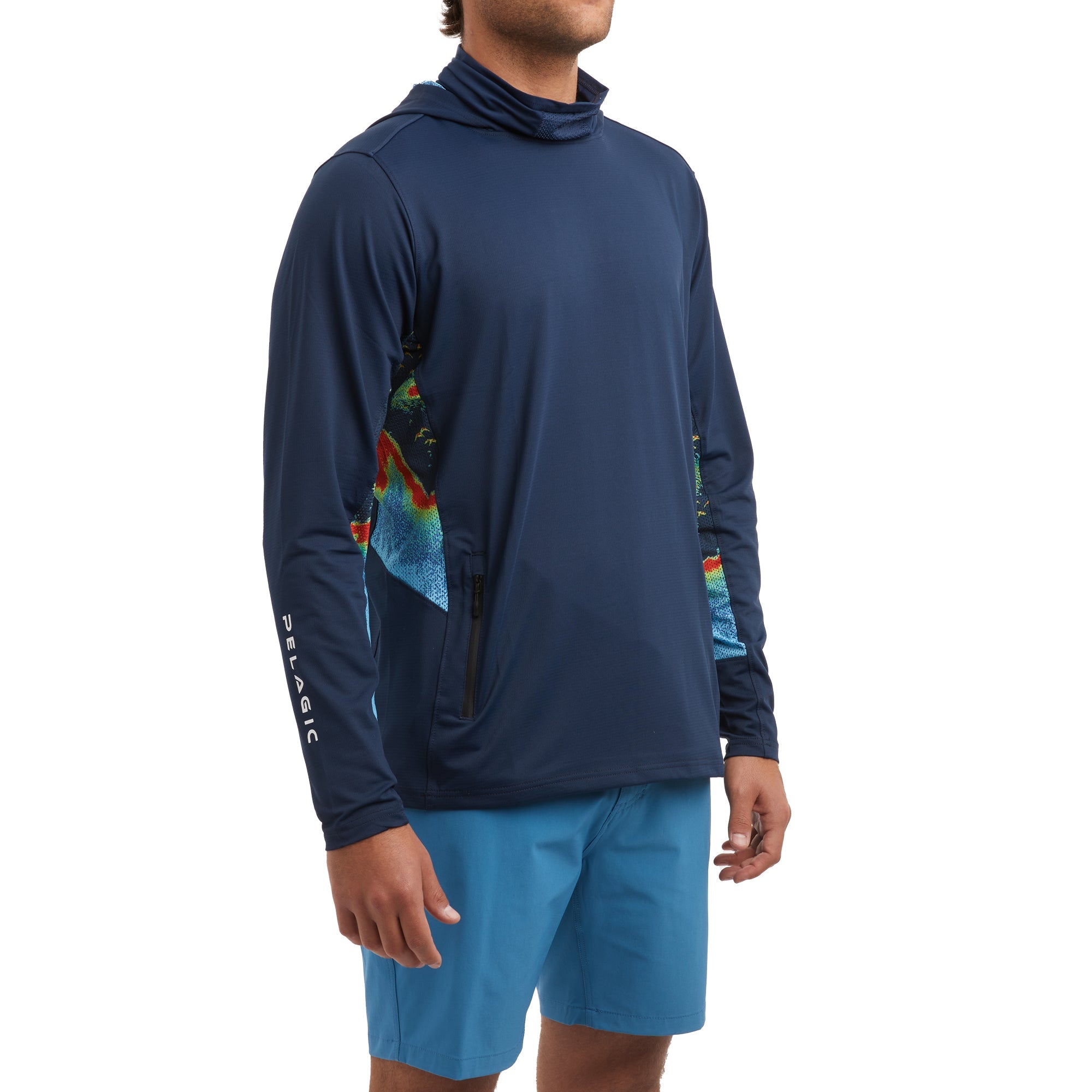 La camiseta de pesca con capucha para hombre Pelagic Exo-Tech "Sonar" ofrece la combinación perfecta de protección UV y durabilidad. Con bolsillos con cremallera, ventilación lateral y en el foso, una máscara facial integrada y una capucha de cobertura total, esta camiseta es un caballo de batalla con todas las funciones para cualquier viaje de pesca. Manténgase protegido y cómodo con Exo-Tech.