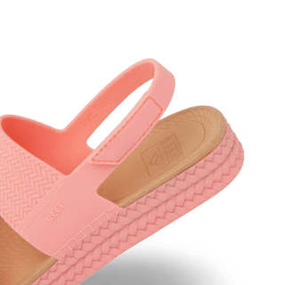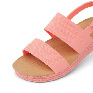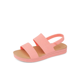 - Parte superior: esta sandalia está hecha de un material flexible y amigable con el agua que se inspira en elementos de la playa y es ajustable con un cierre de velcro.