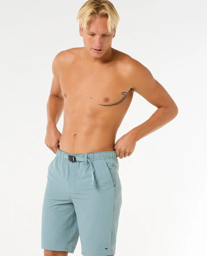 Los pantalones cortos Rip Curl Buck Boardwalk de 20" en Azul Mineral combinan a la perfección estilo y funcionalidad. Confeccionados con un corte holgado y un acabado repelente al agua DWR, ofrecen propiedades hidrofóbicas de secado rápido y materiales de origen responsable. Con múltiples bolsillos funcionales, incluyendo uno lateral con cremallera y uno trasero de ribete, estos pantalones cortos están diseñados para que puedas seguir el ritmo de todas tus actividades en la playa.