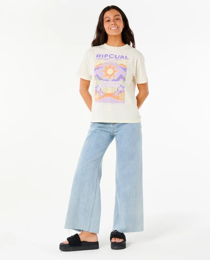 Libera tu espíritu desenfadado con la camiseta relajada Dune Dancer de Rip Curl. Confeccionada en suave jersey de algodón con un acabado lavado a la piedra, esta camiseta ofrece un corte holgado para días frescos. Sus mangas cortas y su llamativo estampado frontal transmiten un aire relajado que combina a la perfección con shorts o vaqueros. Desde paseos por la playa hasta salidas informales, siéntete cómoda y con estilo todo el día.