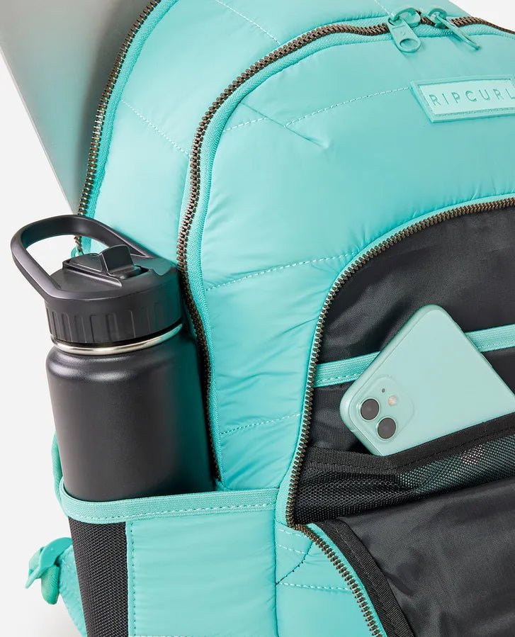 Mujeres aventureras, prepárense para conquistar el día con la mochila acolchada Ozone de 30 litros de Rip Curl para mujer. Su capacidad de 30 litros y su diseño acolchado la hacen práctica y elegante para sus aventuras diarias. El color verde azulado le da un toque atrevido a su look.
