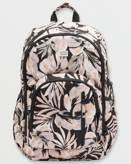 The Roxy "After School" Printed Backpack offers practical organization with three front utility pockets and two mesh side pockets, perfect for keeping essentials within reach. Its padded back and straps provide comfortable support for daily use, while the dedicated laptop pocket ensures your device stays secure. Measuring 17.9" x 13.3", this backpack combines style and function for school or everyday adventures. Available in multiple colors to suit your personal taste.