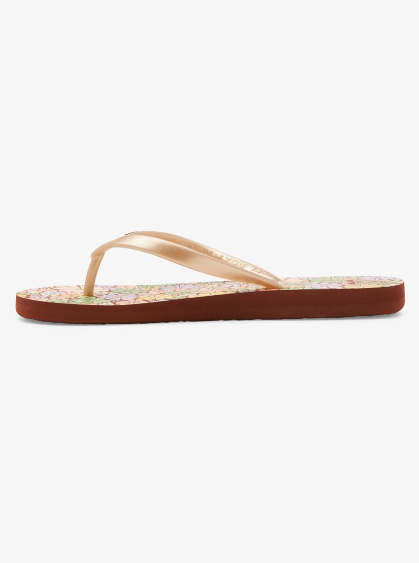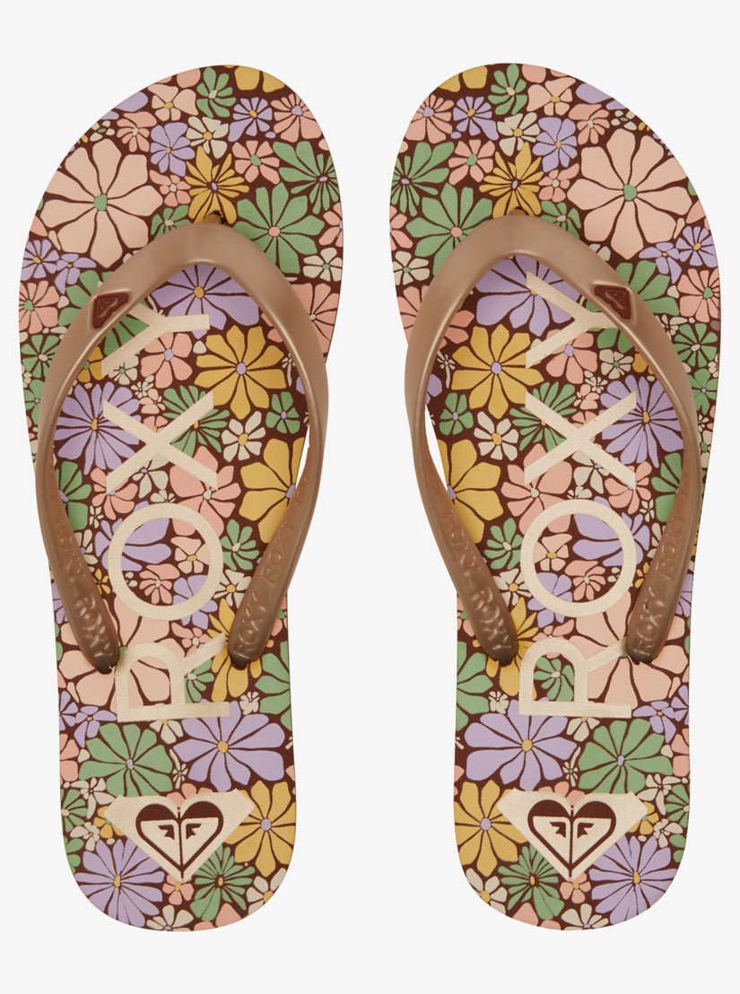 Disfrute de un estado mental tropical con las chanclas "Tahiti" de Roxy. Las suaves correas del tanga con estampados de dos tonos brindan comodidad durante todo el día. La plantilla acolchada de doble densidad garantiza una pisada cómoda. Entra en el paraíso mientras tus pies permanecen relajados.