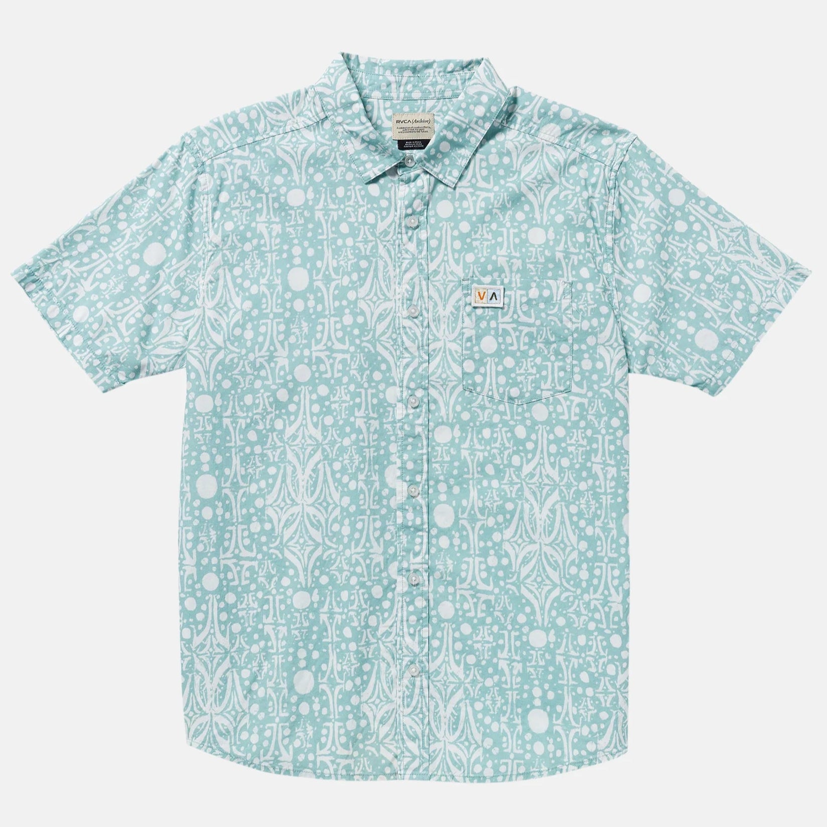 Elevate your wardrobe with the RVCA Jacobs Archive Print Short Sleeve Shirt in Blue Haze. Featuring a refined regular fit and a classic collar neck, this shirt showcases a distinctive print sourced from the RVCA archives, blending timeless style with contemporary appeal. Perfect for those who appreciate subtle sophistication in their casual attire.