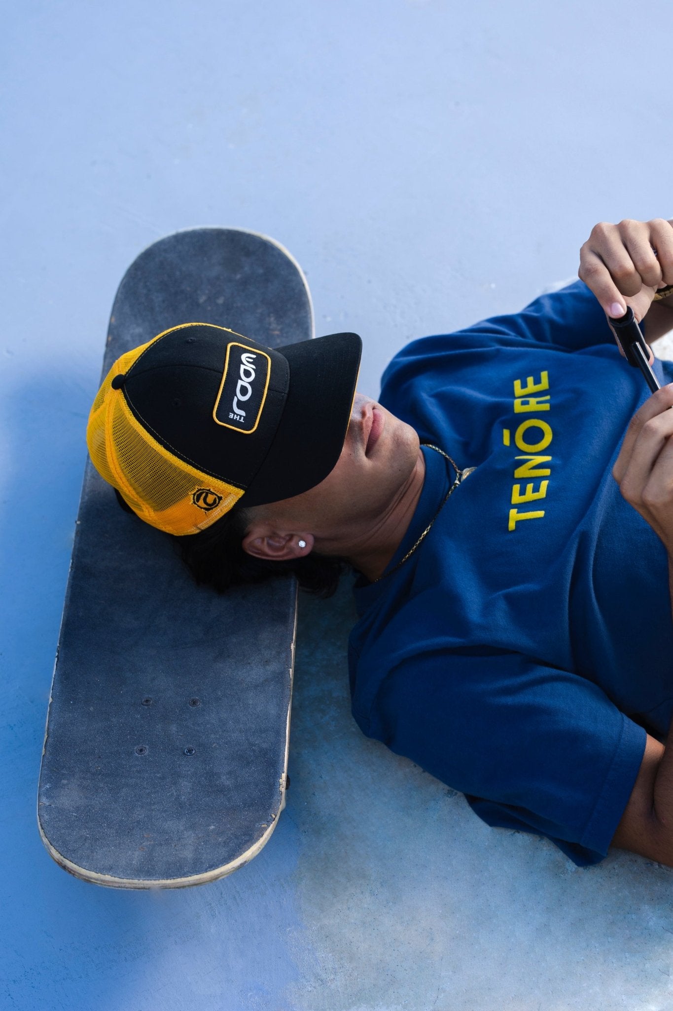 Mantén el estilo y la comodidad con nuestra gorra Trucker premium en amarillo brillante y negro, diseñada para ser moderna y funcional. Con uno de nuestros logotipos bordados en la parte delantera, esta gorra le da un toque de personalidad a cualquier atuendo. La clásica parte trasera de malla estilo trucker garantiza transpirabilidad, mientras que el cierre ajustable a presión ofrece un ajuste personalizable para mayor comodidad durante todo el día.