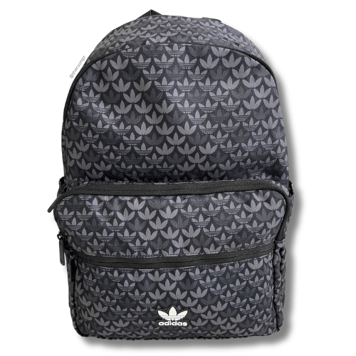 Carry your essentials in style with the Adidas "Monogram" Backpack in black! Featuring two front zippered pockets and two side elastic pockets, it keeps everything organized and within reach. The padded straps add comfort, making it perfect for school, adventures, or everyday fun.