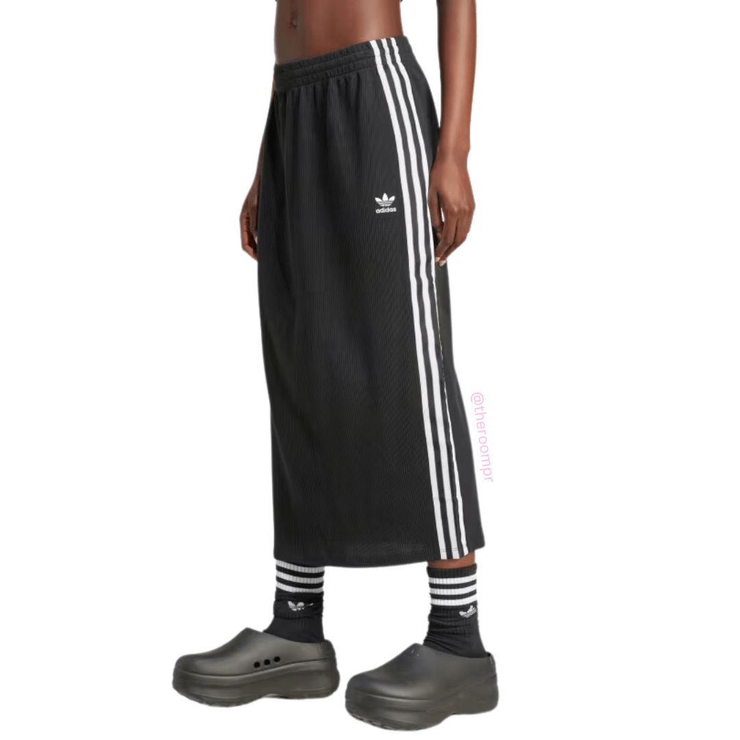 The Adidas Women's Adicolor Knit Skirt in black is a must-have for any fashion-forward athlete. With a slim fit and doubleknit build, this eye-catching skirt moves with you, providing a sleek silhouette. Its signature details pay homage to adidas' sporty heritage, elevating your style to the next level.