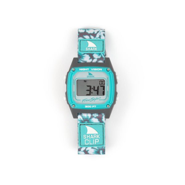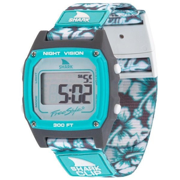 Experience retro-futurism with the Aqua Hibiscus Freestyle Shark Classic Clip Watch. Its original clip band system, inspired by a seatbelt, ensures your watch stays secure, comfortable, and snug throughout your day. Designed for durability and backed by a limited lifetime warranty, this watch offers reliable protection and style you can trust.