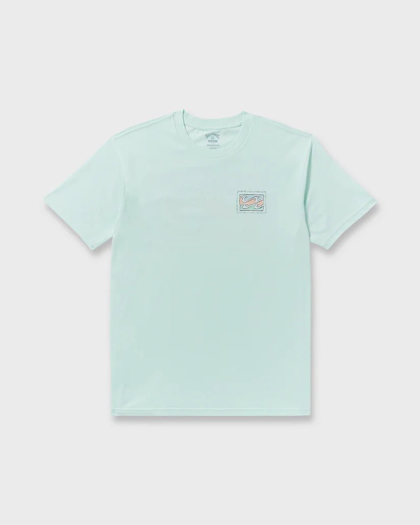 This Billabong "Crayon Wave" premium short sleeve t-shirt in Sea Glass delivers effortless style with a comfortable core fit. Crafted from soft ring-spun cotton and garment washed for a broken-in feel, it offers lasting softness. Bold screen prints on the front and back add a distinctive touch, perfect for men seeking casual coolness with premium comfort.