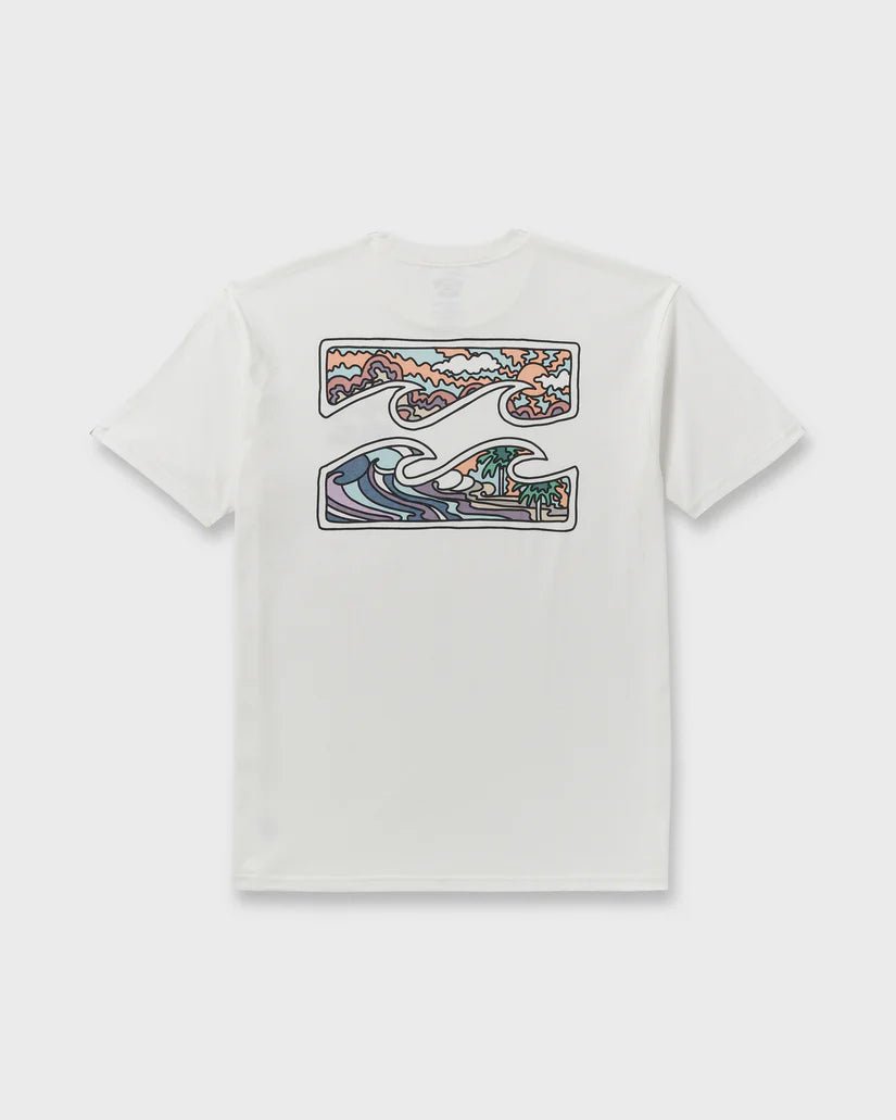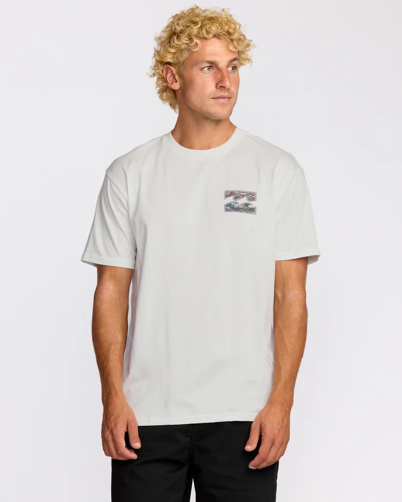 This Billabong "Crayon Wave" premium short sleeve t-shirt in Sea Glass delivers effortless style with a comfortable core fit. Crafted from soft ring-spun cotton and garment washed for a broken-in feel, it offers lasting softness. Bold screen prints on the front and back add a distinctive touch, perfect for men seeking casual coolness with premium comfort.