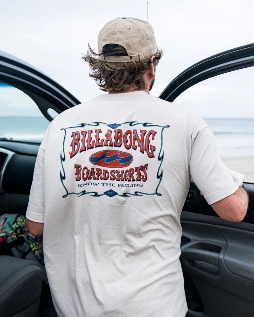 This Billabong "Double Spread" OG Short Sleeve T-Shirt in Chino delivers a vintage-inspired fit with broad shoulders and extended sleeves for a confident, relaxed look. Crafted from heavyweight cotton and garment-washed, it ensures extra softness and durability. Bold screen prints on the front and back add authentic street style, making it an ideal choice for men seeking classic comfort with a modern edge. The Beige tone complements a versatile, effortless wardrobe staple.