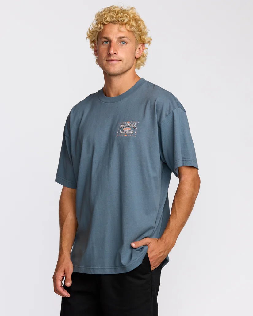 This Billabong "Double Spread" OG Short Sleeve T-Shirt delivers a vintage-inspired fit with broad shoulders and extended sleeves for a confident, relaxed look. Crafted from heavyweight cotton and garment-washed, it ensures extra softness and durability. Bold screen prints on the front and back add authentic street style, making it an ideal choice for men seeking classic comfort with a modern edge. The Beige tone complements a versatile, effortless wardrobe staple.