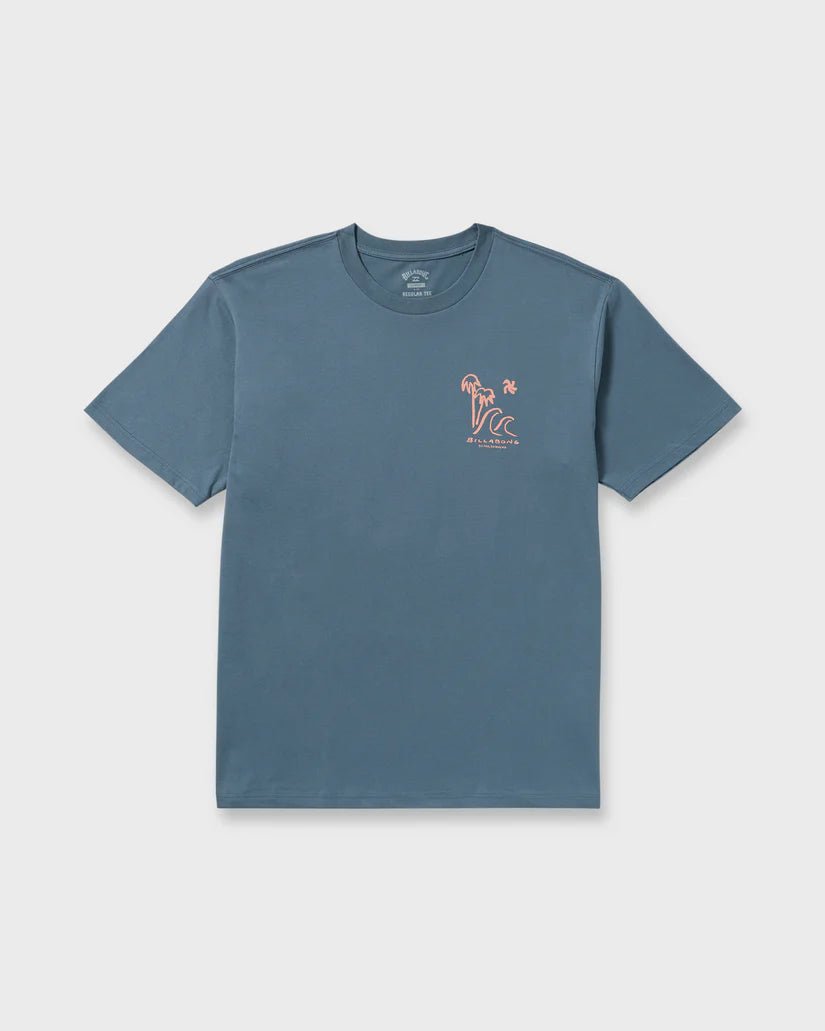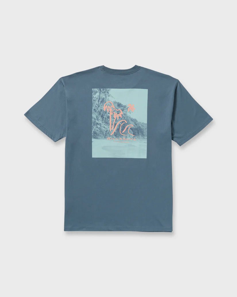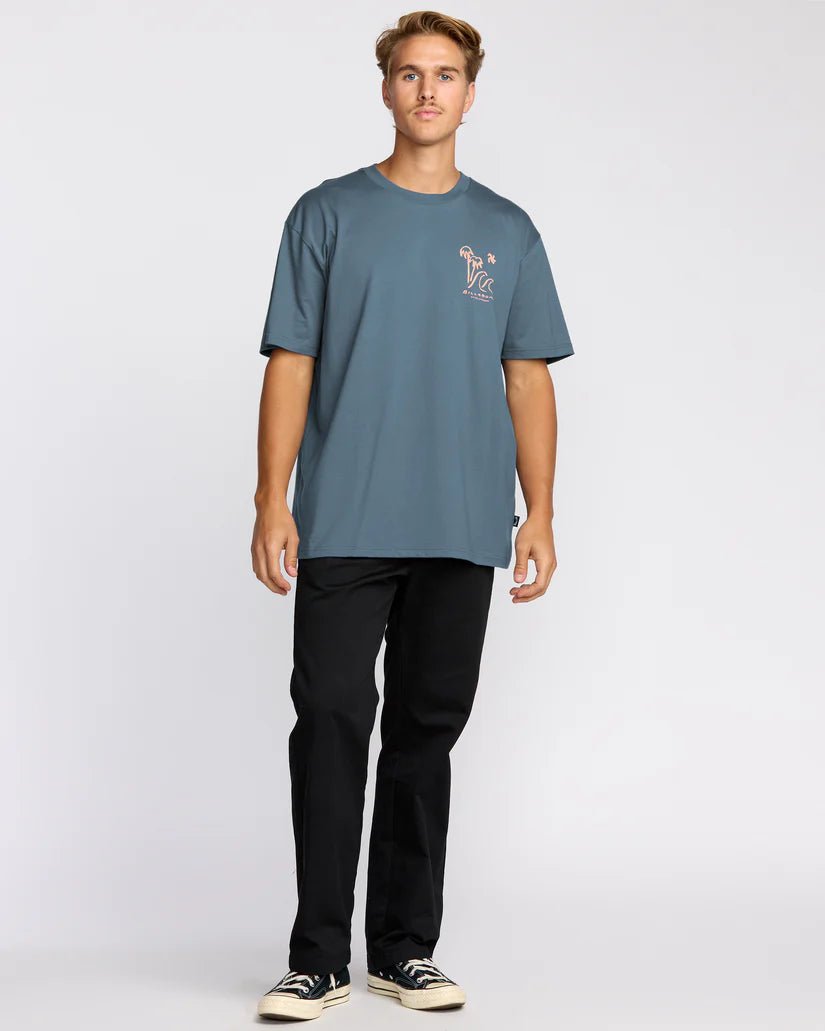This Billabong "So Far" Short Sleeve T-Shirt in Steel Blue offers effortless style with its relaxed fit and soft garment-washed cotton fabric. Designed for everyday wear, it combines comfort with artistic front and back screen prints, making it a versatile staple for your casual wardrobe. Perfect for laid-back days and weekend adventures.