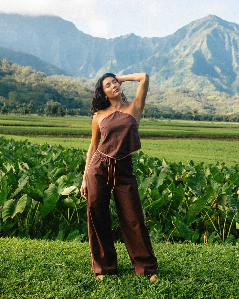 Effortless comfort meets refined style with these Billabong Women's "Double Take" pants. Crafted from a breathable cotton-linen blend, they're designed for all-day wear whether you're heading to the beach or running errands around town. The adjustable elastic waistband and drawcord guarantee a personalized fit, while contrast side binding and metal plate accents deliver understated sophistication. Perfect for layering or wearing solo, this Teak colorway pairs seamlessly with your existing pieces for a versatile wardrobe staple.