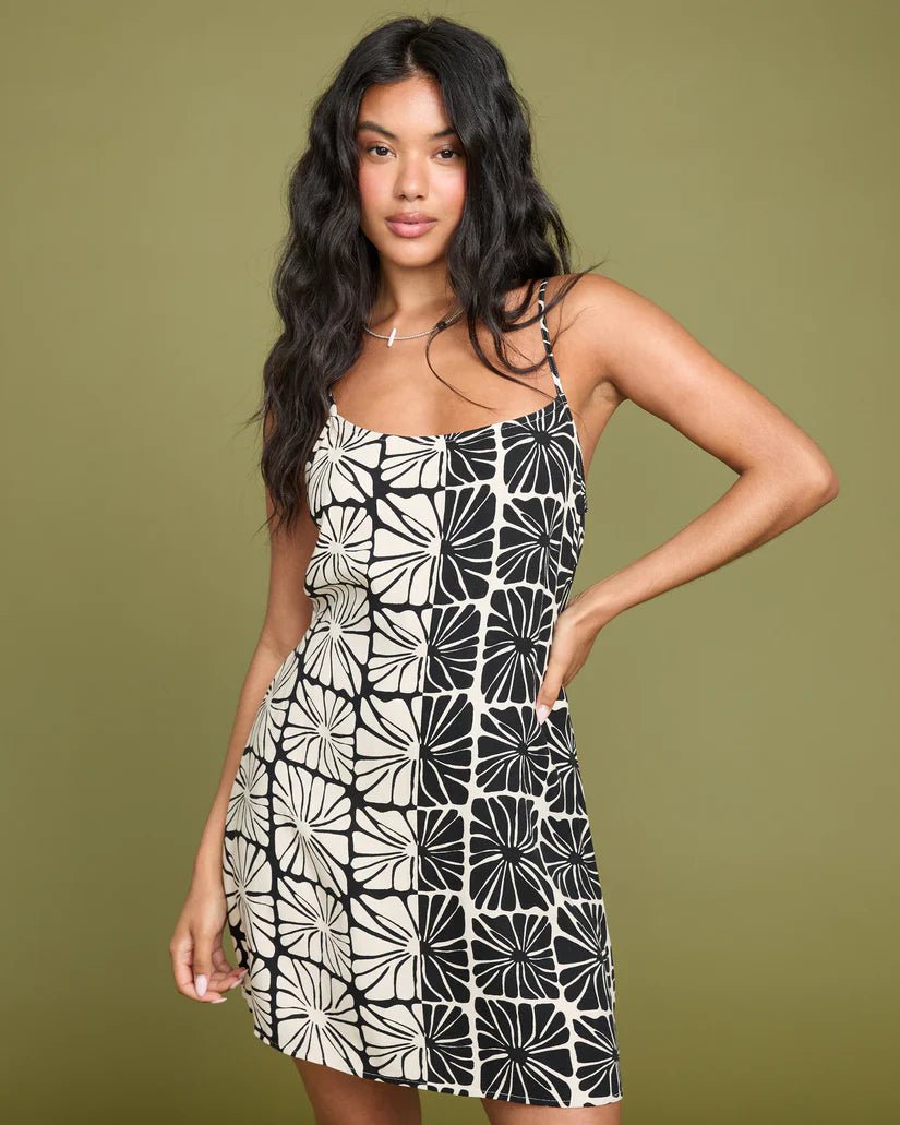 Embrace effortless elegance with this flowy mini dress, designed for those who move through life with grace. The striking back cutout and self-tie detail create a flattering silhouette, while luxuriously soft viscose fabric flows with every step. A subtle metal plate accent catches the light just right, adding understated sophistication to your everyday look. Perfect for warm days when you want to feel confident and comfortable.