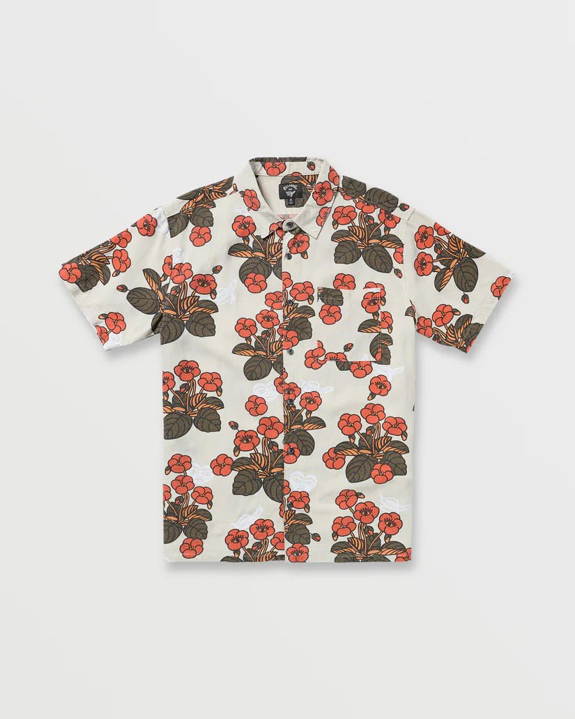 The Billabong x Mami Wata "Icons" Men's Short Sleeve Shirt in Stone combines effortless style with everyday comfort. Crafted for a relaxed fit, this shirt features a subtle, artistic design that offers a modern edge. Its breathable fabric keeps you cool and ready for any occasion, from casual hangouts to laid-back beach days. Elevate your wardrobe with a piece that balances classic vibes and contemporary flair.