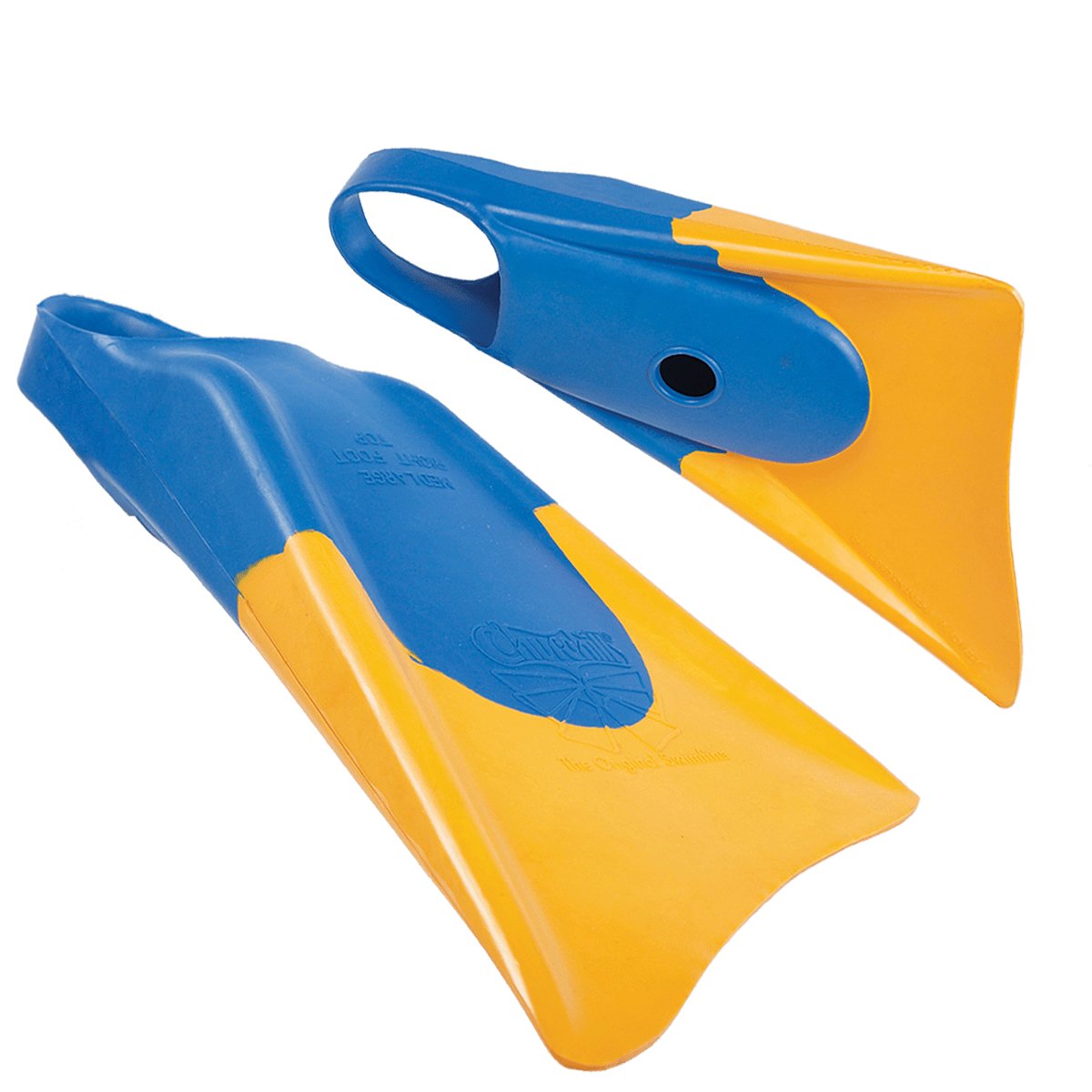 "Made since 1936, the Patented and Trademarked, Churchill Makapuu Floating Fins, have become standard equipment in performance bodyboarding and are also the original swimfin. Each natural rubber fin is individually inspected for quality. The Makapuu fin was created to resemble a dolphin tail, which will give you the most thrust and performace out of any fin on the market. The Makapuu fin is made of 100% natural gum rubber and they float!" - churchillswimfins.com