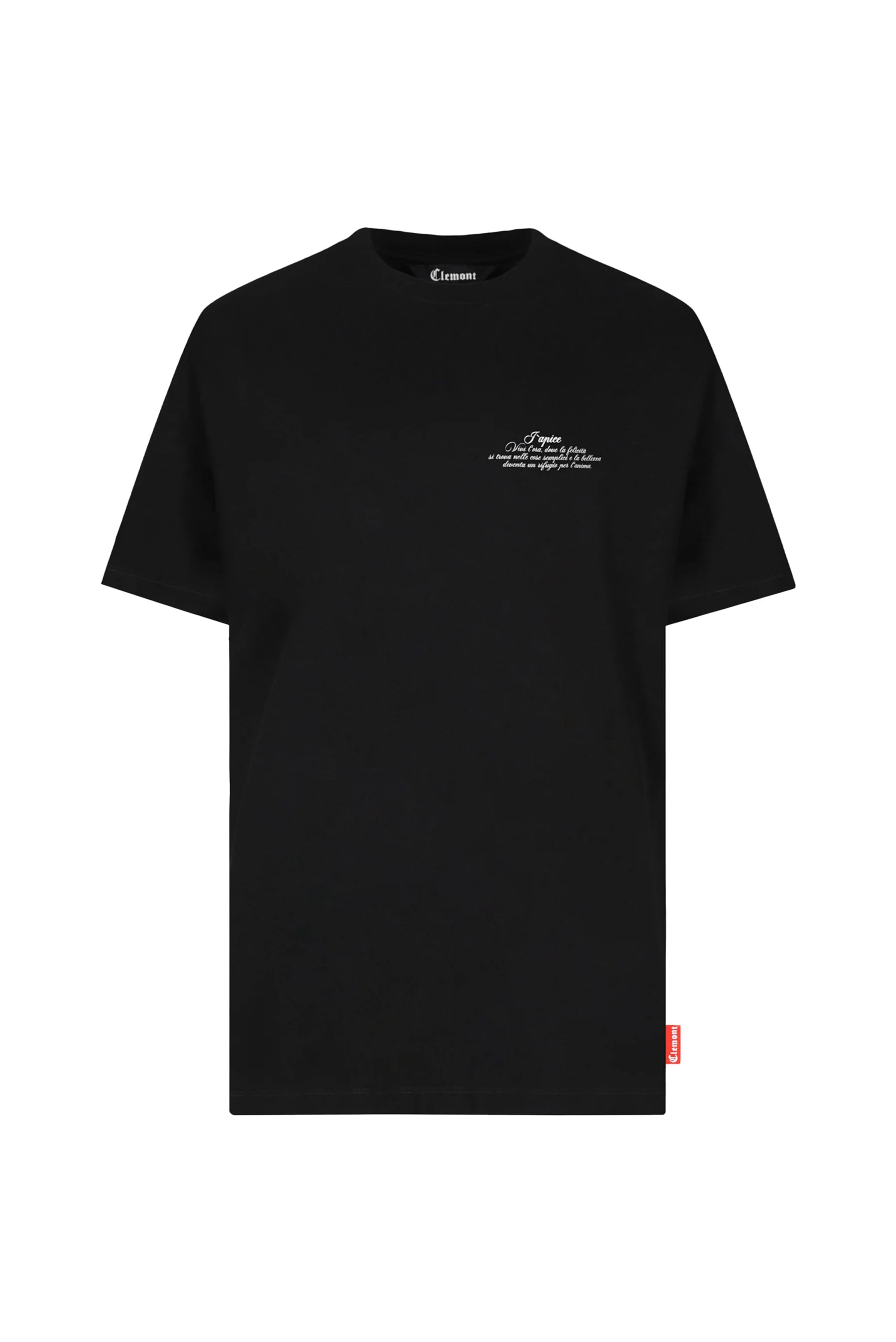 Elevate your streetwear collection with the Clemont "Risplendente" Men's T-Shirt in black. Crafted from premium materials for exceptional comfort and durability, this tee offers a sleek, minimalist design that embodies effortless luxury. Its refined fit and subtle branding make it a versatile piece, perfect for making a bold yet understated statement in any urban setting.