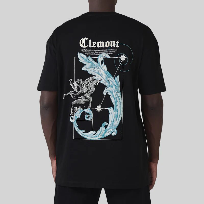 Elevate your streetwear game with the Clemont "Spirale" men's t-shirt in black. This semi-oversized tee offers both comfort and style with its soft and breathable fabric. The durable design ensures long-lasting wear, making it perfect for any occasion. Complete with a rubberized flag logo for a luxurious and modern touch.
