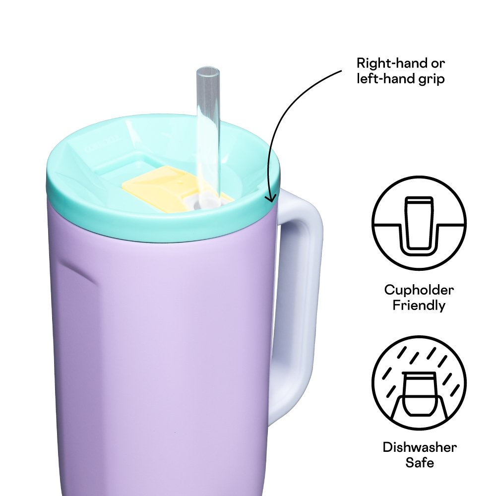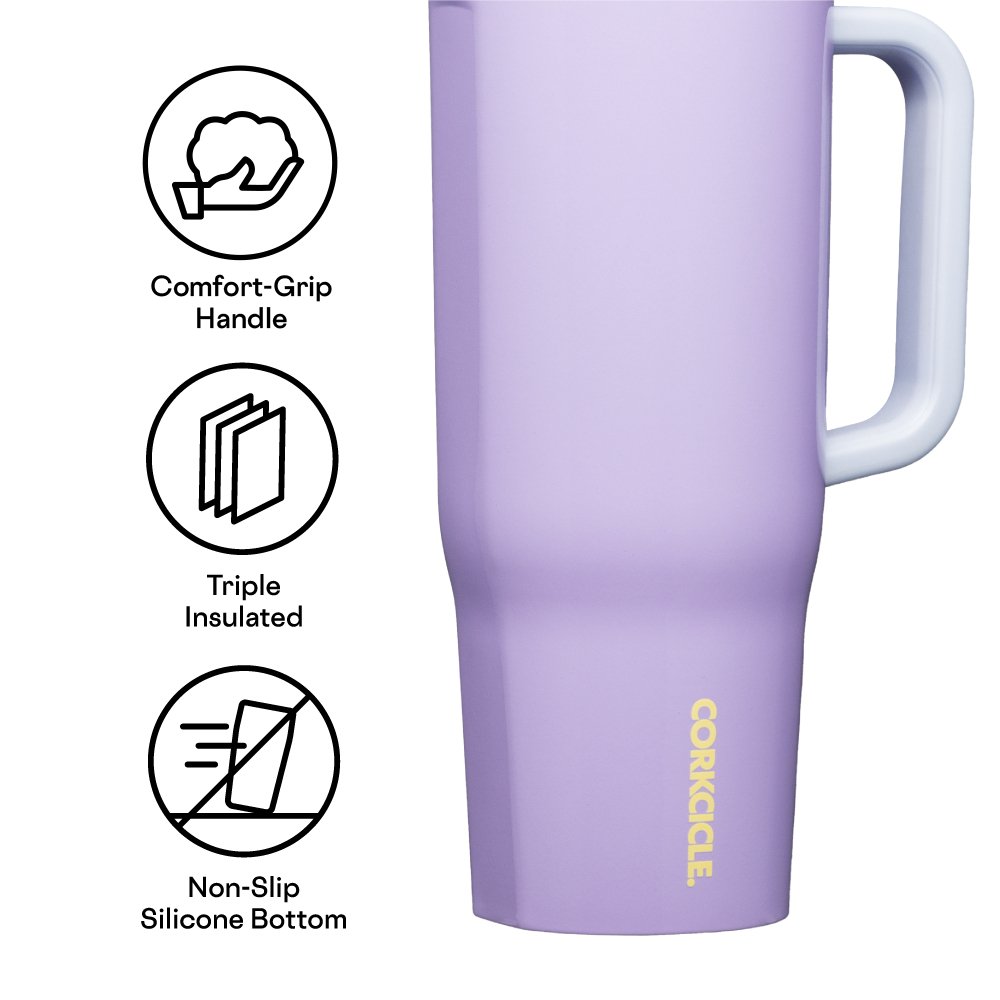 Experience the ultimate joyride with the Corkcicle Cruiser Insulated Tumbler. Keep 40oz of your favorite beverage cold for up to 20 hours, making every adventure a refreshing one. With a dual-function, spill-proof lid, soft-grip handle, and secure silicone bottom, this tumbler is perfect for any destination. Get yours now in bold purple dolphin.