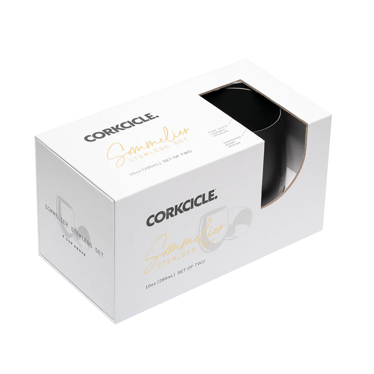 Elevate your wine experience with the Corkcicle Sommelier Stemless Set, engineered in partnership with sommelier experts to honor every vintage. The thoughtfully proportioned bowl and tapered opening guide aromas and flavors exactly as intended, while the signature Vanishing Edge™ lip delivers a refined sip without interruption. Pure Taste Ceramic Interior ensures each pour tastes pristine; No competing flavors, only the wine itself. Presented as a pair in elegant gift packaging, these stemless glasses are ready to impress.