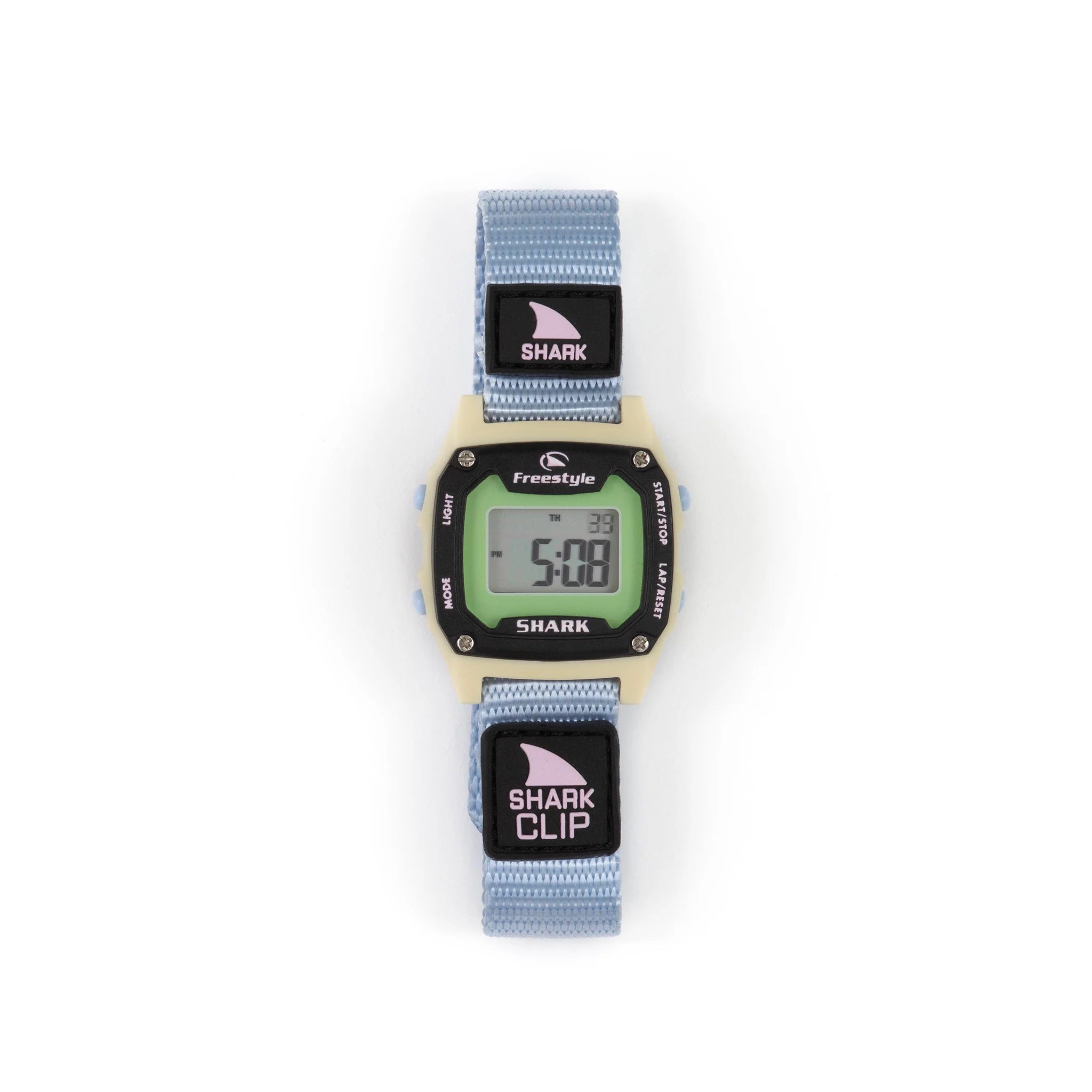 Capture the serene spirit of the coast with the Freestyle Shark Classic Clip Mini Watch in Acai. Featuring calming pastel blues and greens, this compact watch fits wrists up to 8" and delivers essential digital functions—date, time, stopwatch, and countdown timer. Its user-friendly Shark Clip closure offers a secure, comfortable fit, while 100m water resistance ensures durability during all your seaside activities. Perfect for sunny days and relaxed moments, Acai adds a touch of effortless coastal style to your summer essentials.