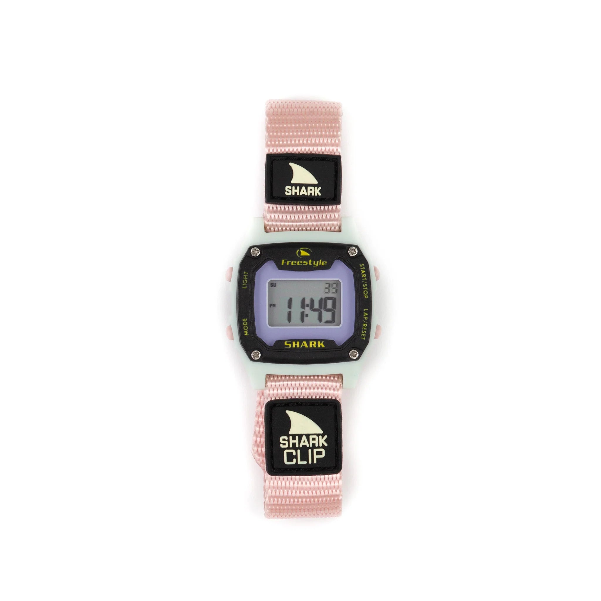 Get ready for summer with the Freestyle Shark Classic Clip Mini Watch in Mochi. This soft pastel pink watch with playful accents is designed for smaller wrists up to 8" and offers all the essential digital features—date, time, stopwatch, and countdown timer. Its lightweight design and comfortable Shark Clip closure make it easy to wear from hot days to cool evenings. Water-resistant up to 100m, Mochi is a reliable and stylish companion for all your summer adventures.