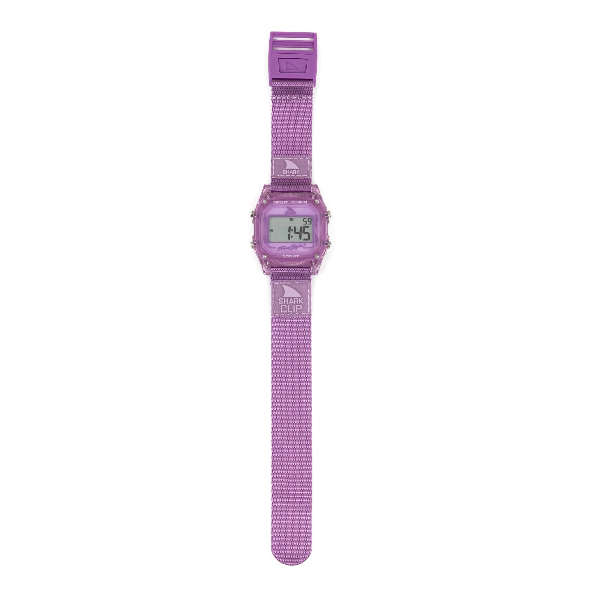 Elevate your summer adventures with the Freestyle Shark Classic Clip Watch in Plum. This vibrant watch features a transparent purple case and a deep plum-colored strap with signature see-through patches, combining style with durability. Water-resistant up to 100 meters, it’s perfect for water sports or poolside relaxation. Stay on time with digital displays for time, date, countdowns, plus useful tools like stopwatch, timer, and alarm. Ideal for active lifestyles, this watch supports your day while keeping your look fresh and bold.