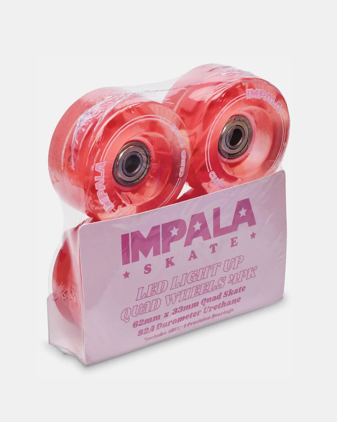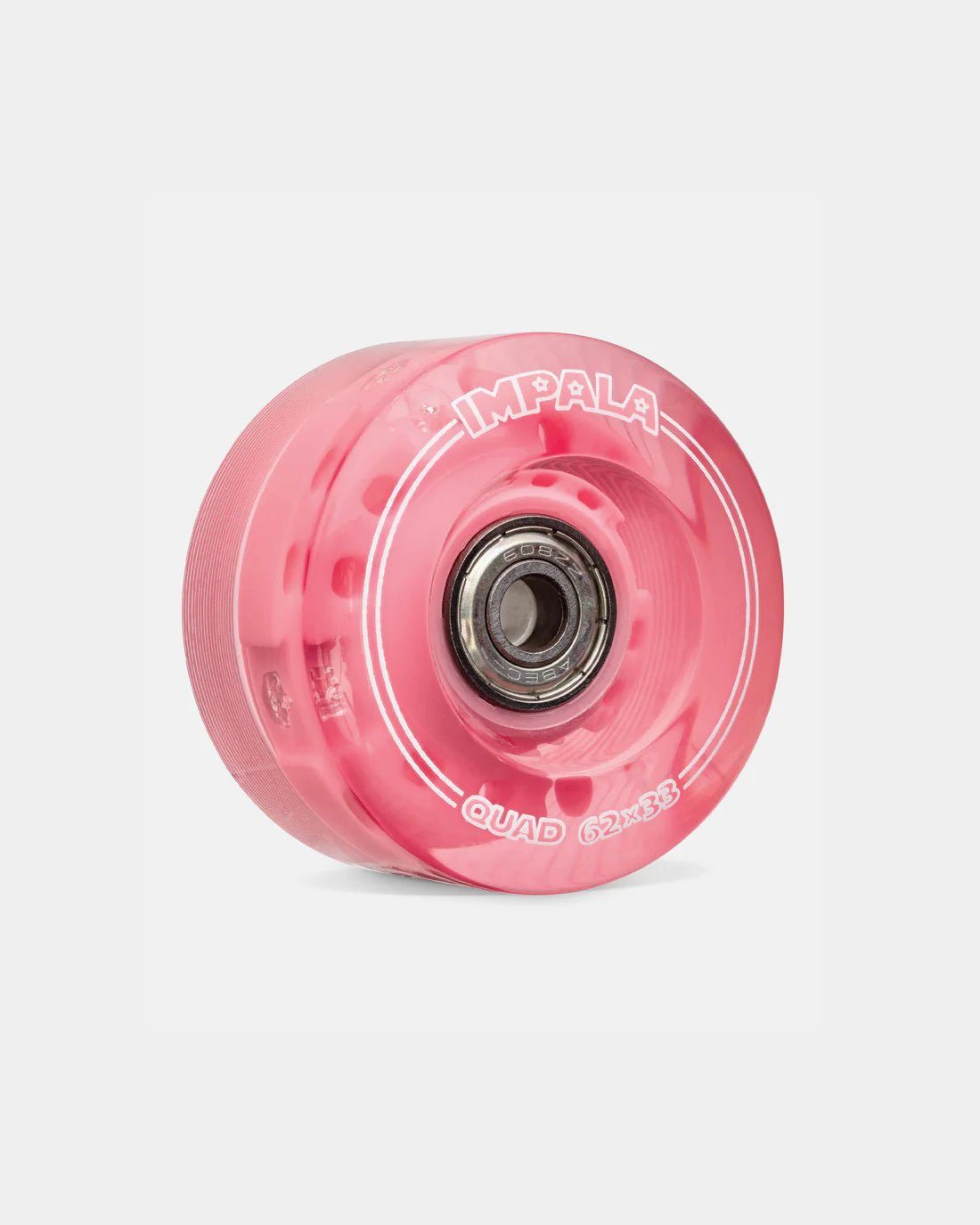 Upgrade your roller skates with Impala Light-Up Wheels. These 62mm x 33mm, 82A Durometer Urethane wheels not only add a stylish touch with their pink color, but they also light up as you skate for a fun and unique experience. Perfect for indoor and outdoor use, these wheels come in a pack of 4 and are sure to make you stand out as you roll.