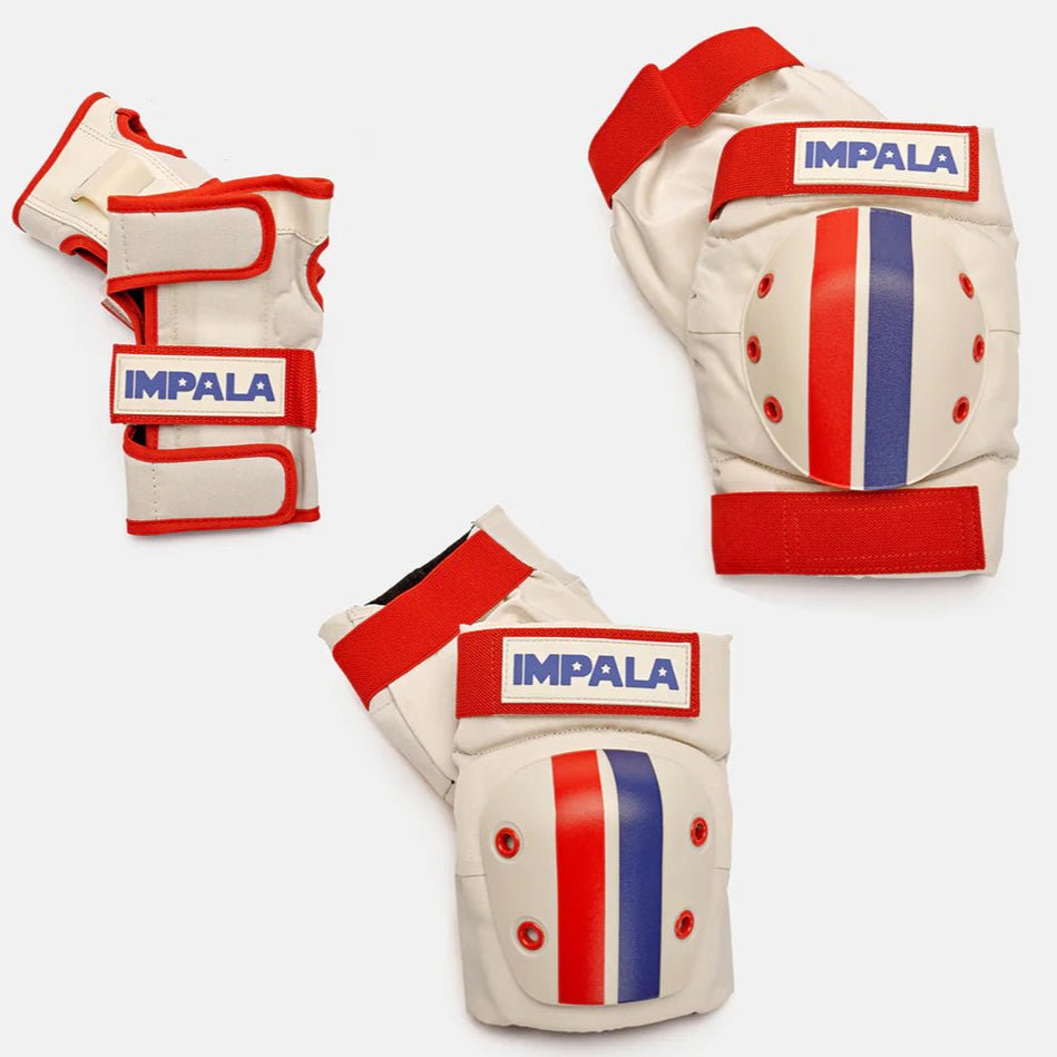 Experience ultimate protection and style while skating with the Impala Protective Set for Adults. This custom-designed set includes knee, elbow, and wrist pads with a breathable Lycra backing. With an extended size range and convenient mesh carry bag, you'll always be prepared for your next skating adventure.