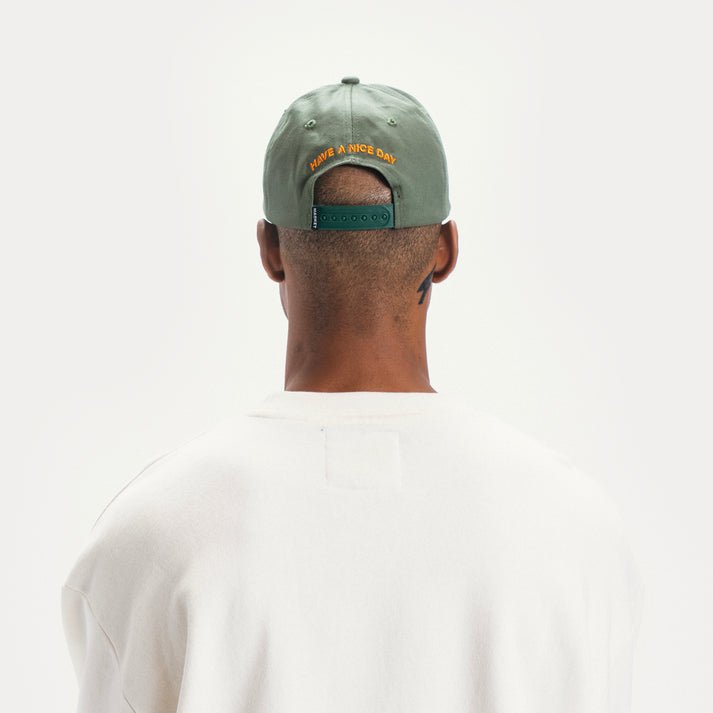 Add some streetwear flair to your look with our "Offset ARC" 6 Panel Hat in Sage Green. This classic fitting snapback features our embroidered logo on the front and a positive "Have a Nice Day" message on the back. Elevate your style and spread positivity with this hat.