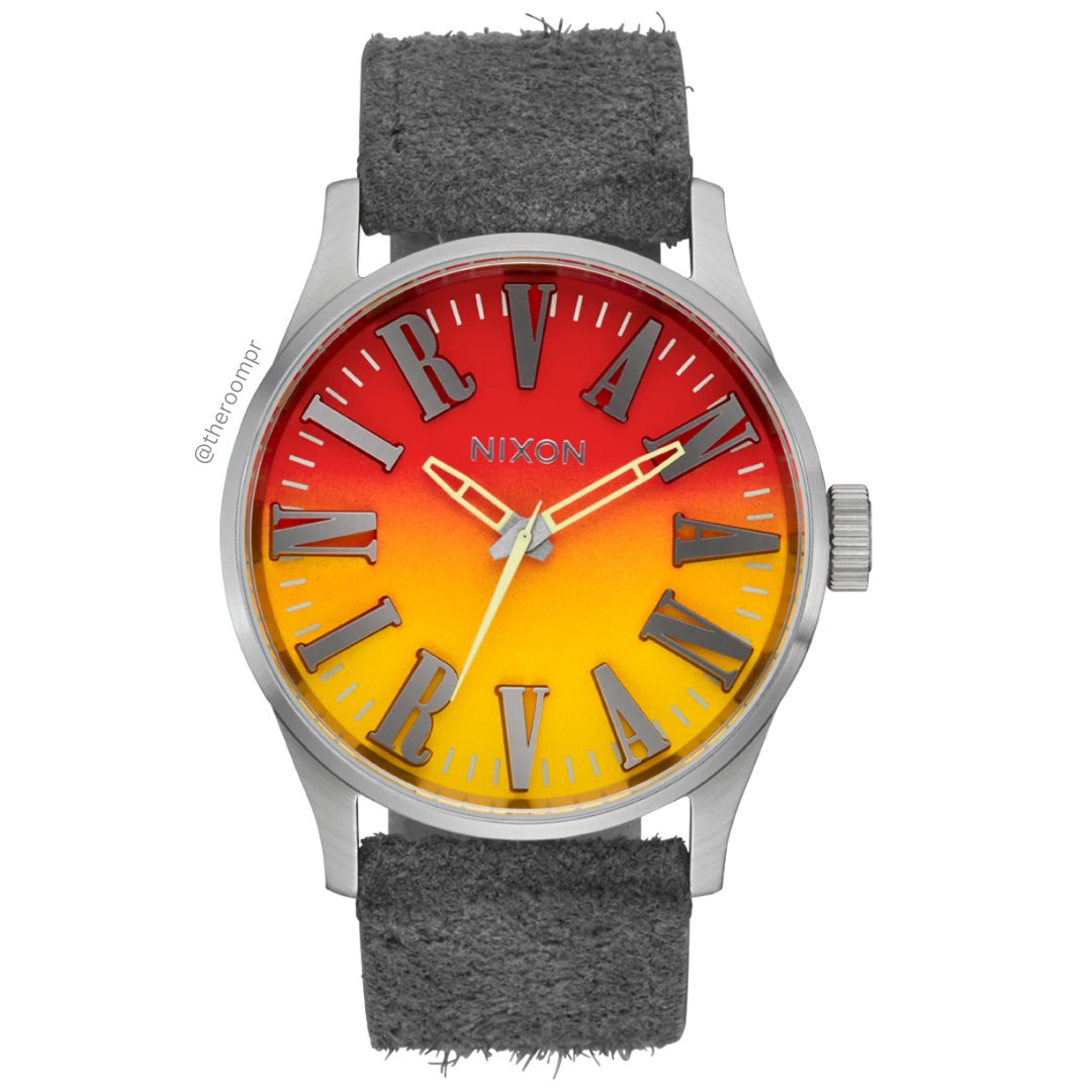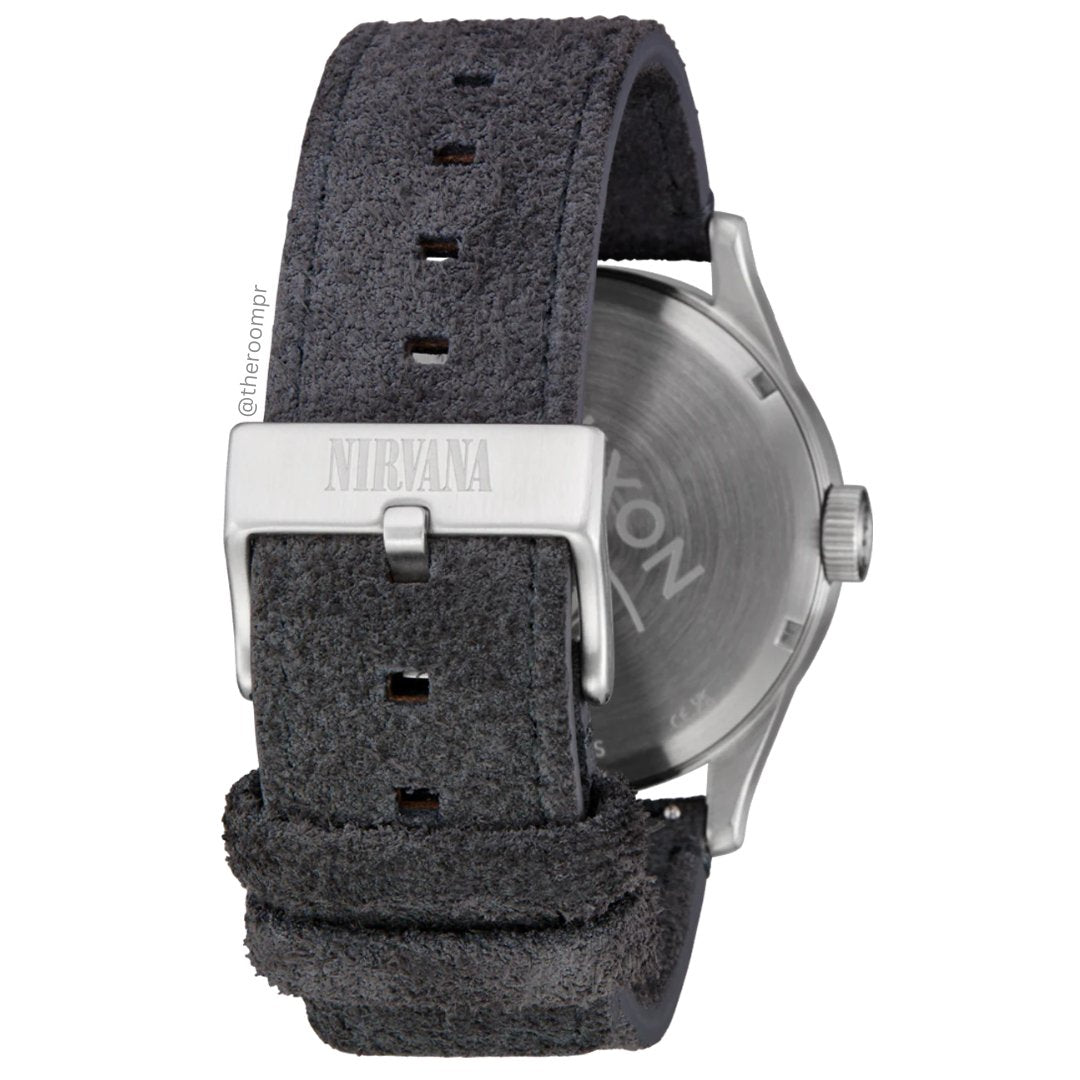 Experience the ultimate in comfort and style with the Nirvana Nixon "Sentry Leather" Watch! Inspired by their iconic sweaters, this watch features a soft leather band with unique Nirvana text indices. The sunray dial adds a touch of sophistication. Don't miss out on this exclusive design, excluded from the Free Shipping Offer.