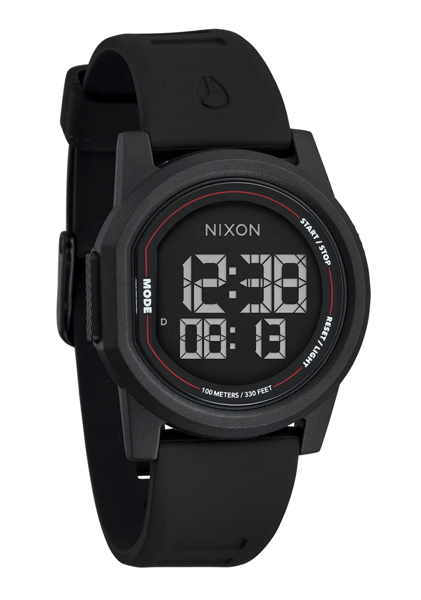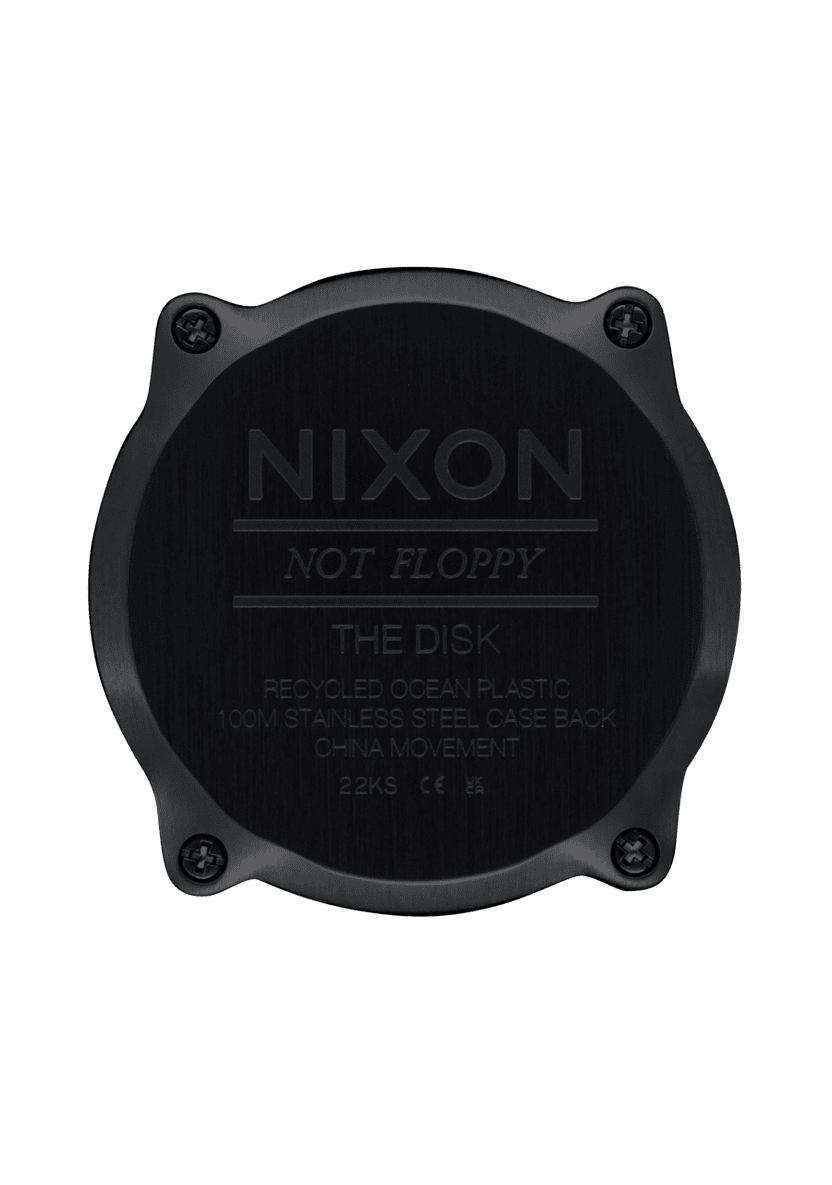 The Nixon Disk breaks free from convention with its bold circular design and stripped-down digital interface. Three intuitive buttons give you instant access to day, date, alarm, chronograph, and countdown timer; Everything you need without the clutter. Built ultra-thin for comfortable all-day wear, whether you're catching waves or hitting the pavement, the Disk keeps up with your active lifestyle. Crafted from recycled plastic, it proves that looking sharp and protecting the planet go hand in hand.