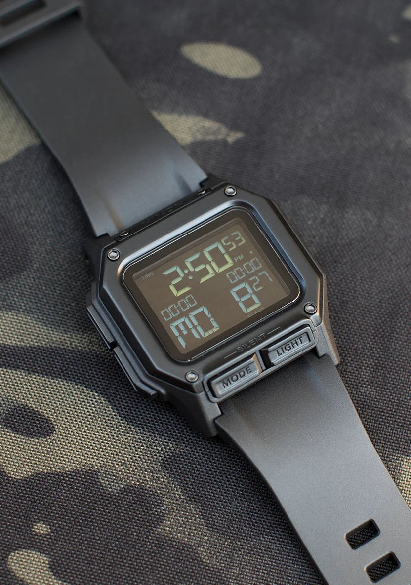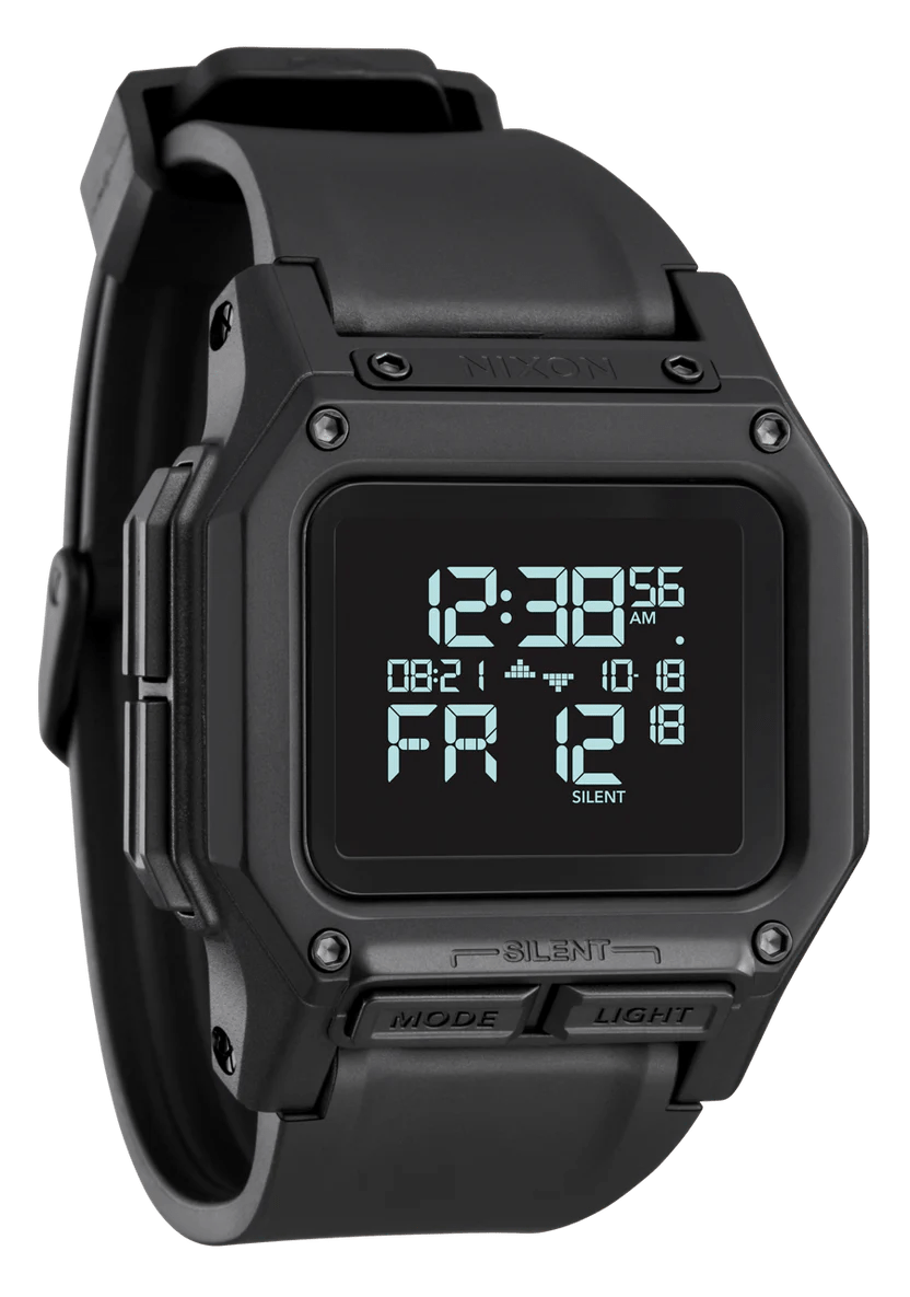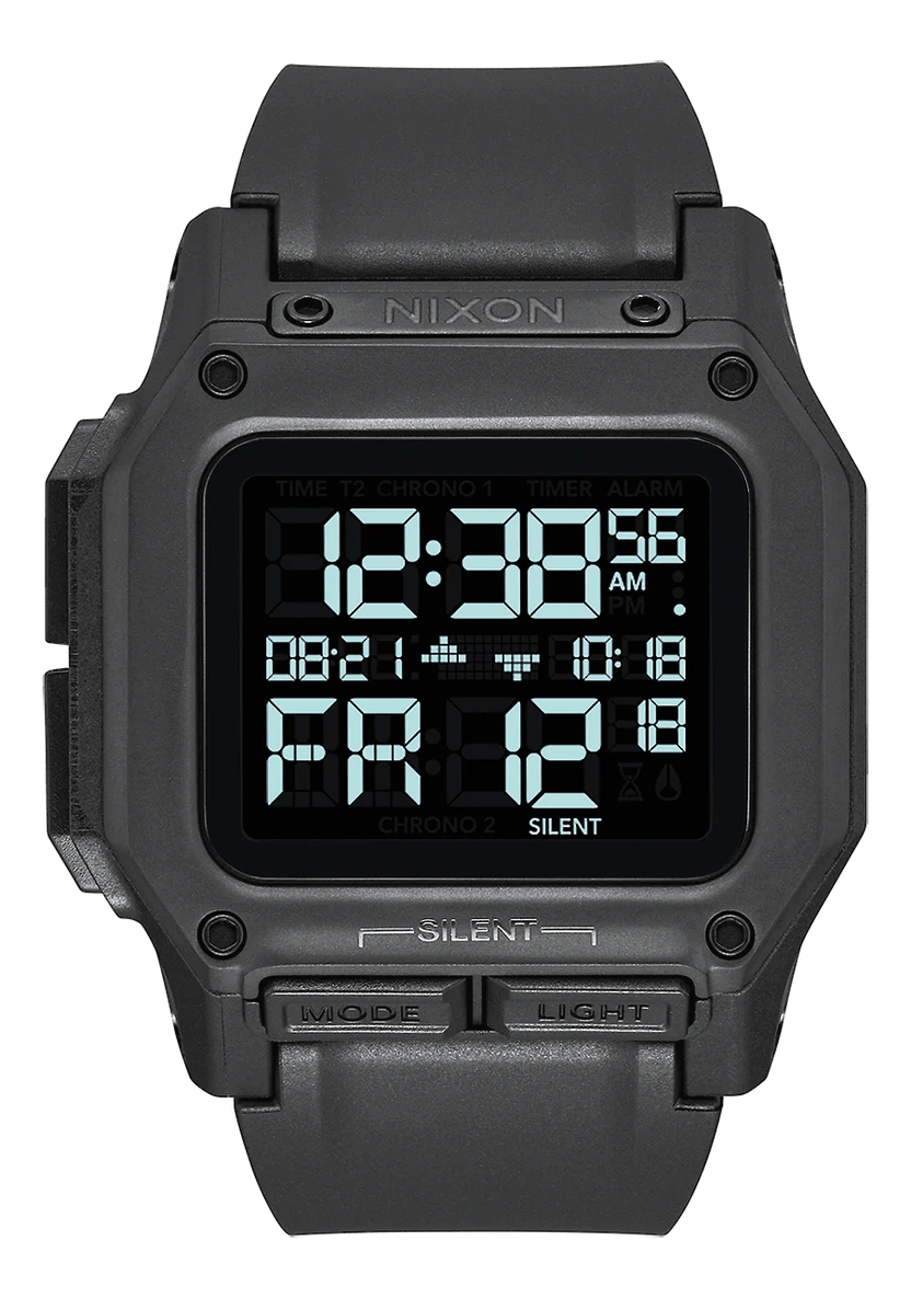 Built for extreme conditions and developed with US Special Forces, the Nixon Regulus is engineered to withstand whatever you throw at it. This all-black timepiece features shock-proof construction and exceptional water resistance, backed by an impressive five-year battery life. Stay on schedule with dual timers, three independent alarms, and silent mode for discreet operation. The adjustable LED backlight ensures visibility in any lighting situation. When durability and reliability matter most, the Regulus delivers uncompromising performance.