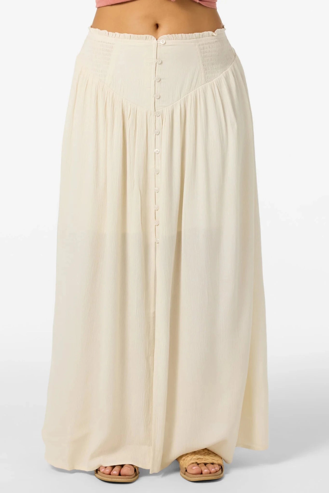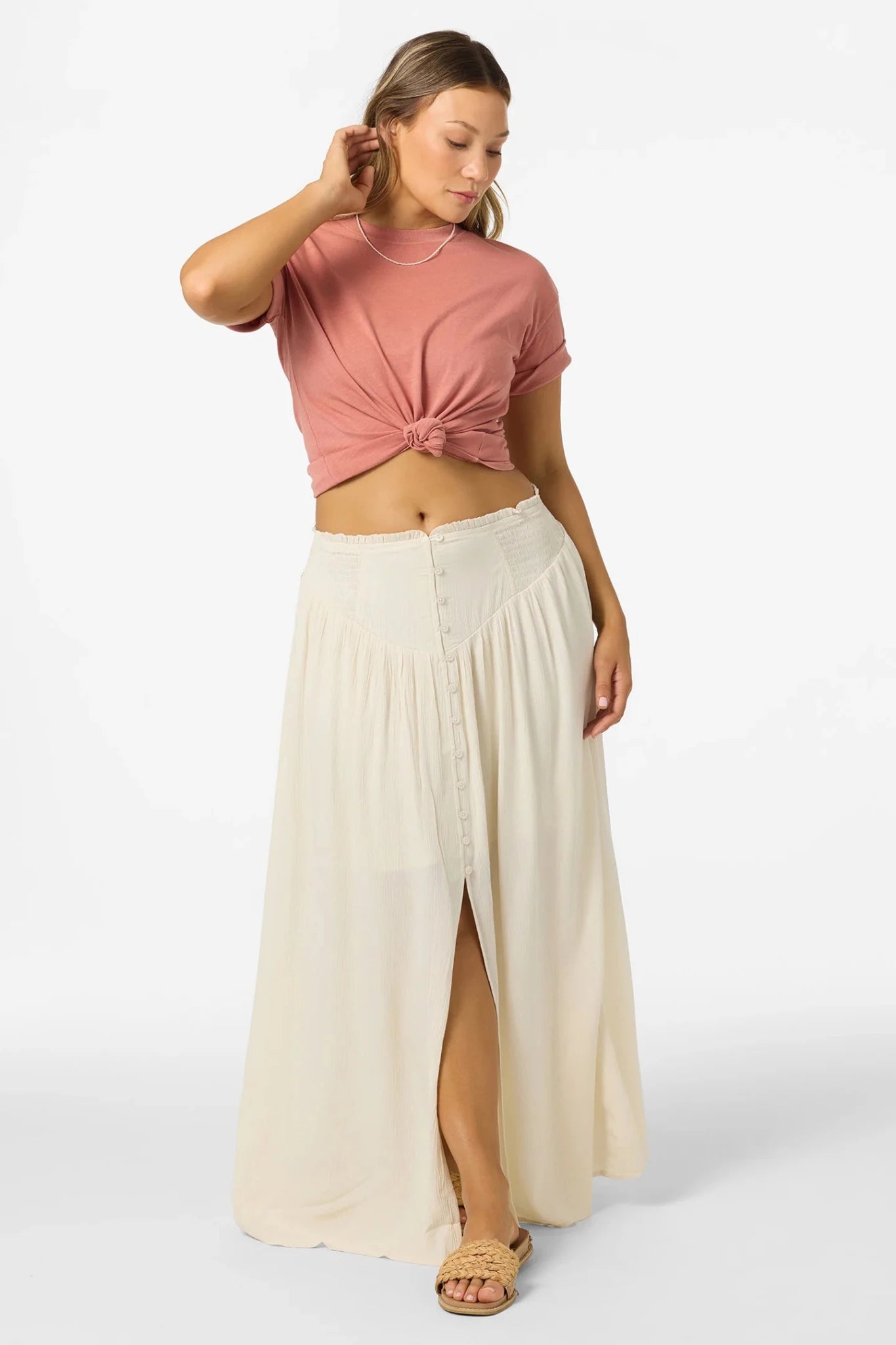 O'Neill's Tryston Midi Skirt combines effortless style with practical comfort. The pull-on design and lightweight, crinkle fabric make it perfect for warm days, whether you're heading to the beach or running errands around town. A classic button front adds a polished touch to this versatile piece that transitions seamlessly from casual to dressed-up occasions.